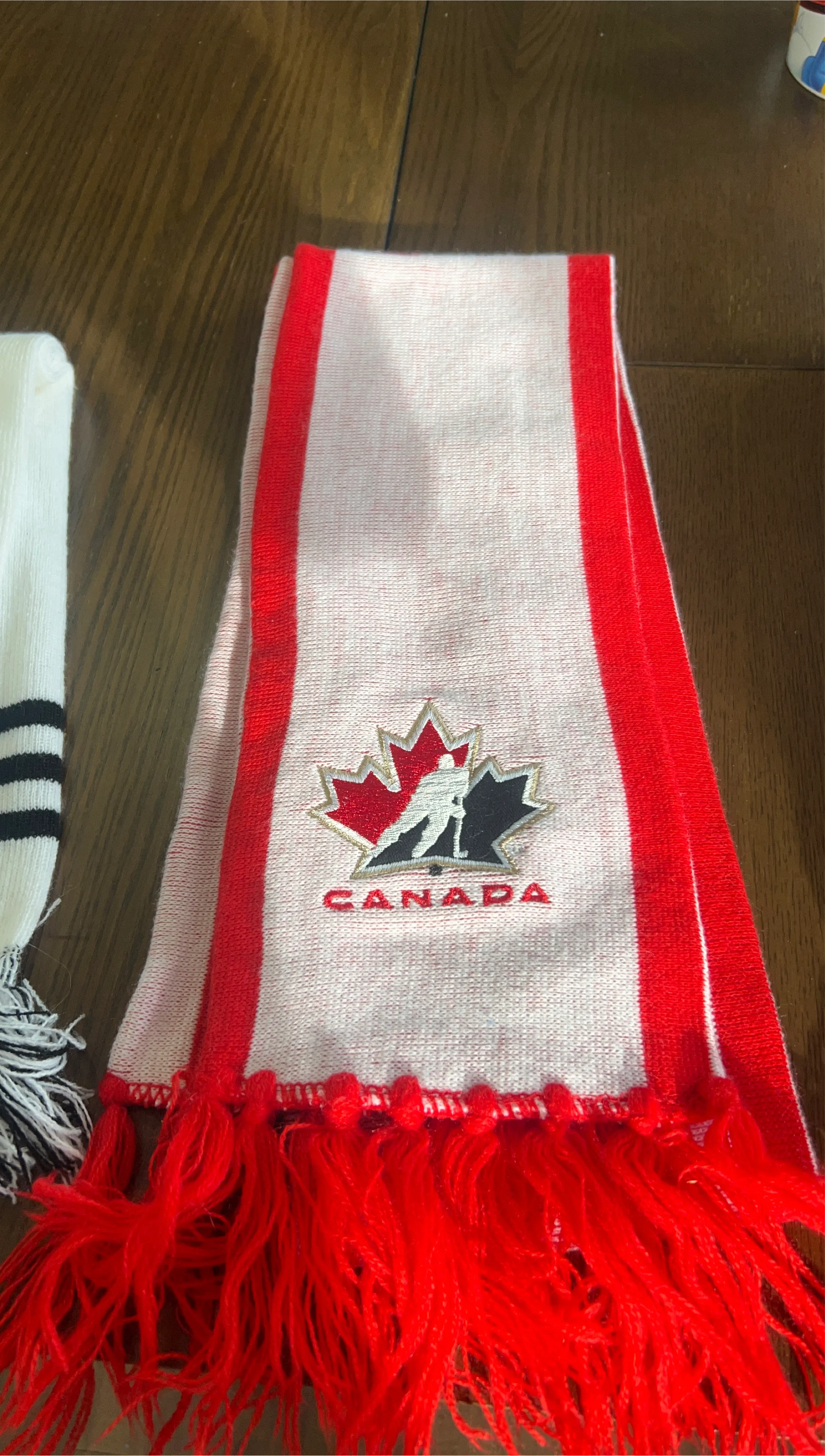 Canada Scarf with Maple Leaf and Hockey Player Design