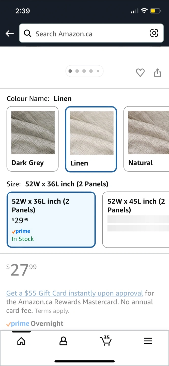 Linen Kitchen Curtains 52W x 36L Inch (2 Panels)