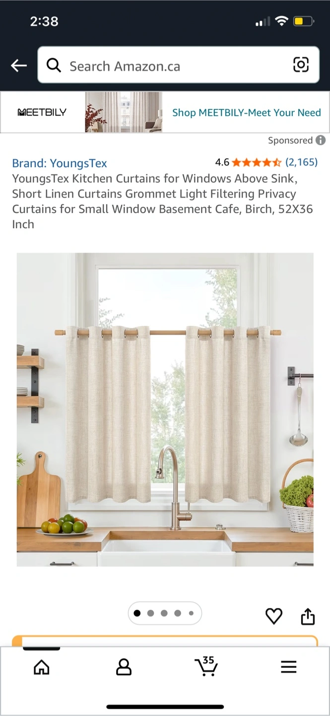 YoungsTex linen kitchen curtains for windows. These short grommet curtains are light filtering and provide privacy. Made of linen material. Includes two panels.