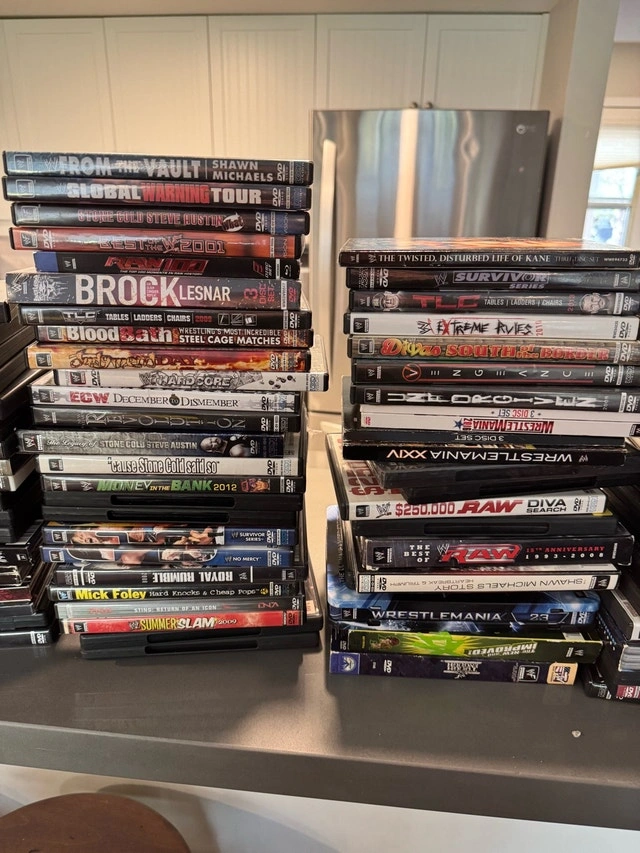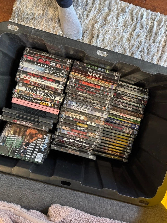 Huge WWE Wrestling DVD lot, 3 bins full. Likely have every single title. Need gone as I’m moving. Asking $2000 or best offer. Pickup in Collingwood.