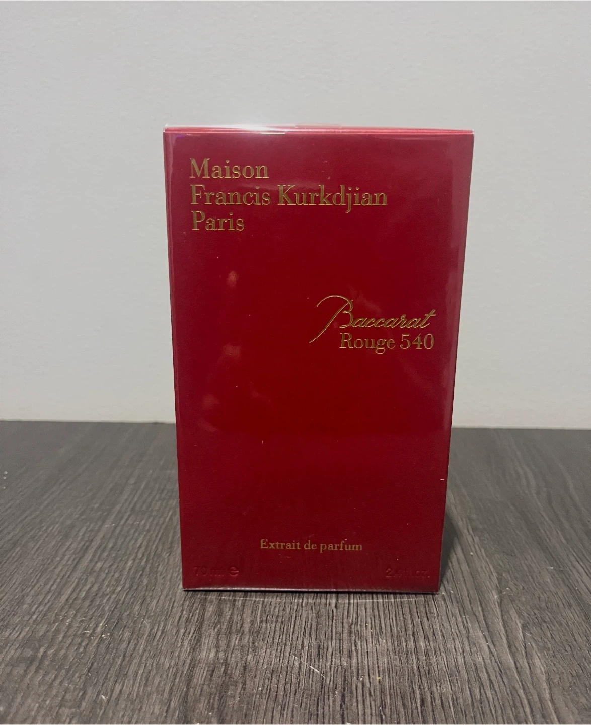 This is a bottle of Maison Francis Kurkdjian Baccarat Rouge 540 Extrait de Parfum. It's a luxurious fragrance with a rich scent profile. The bottle is 70ml.