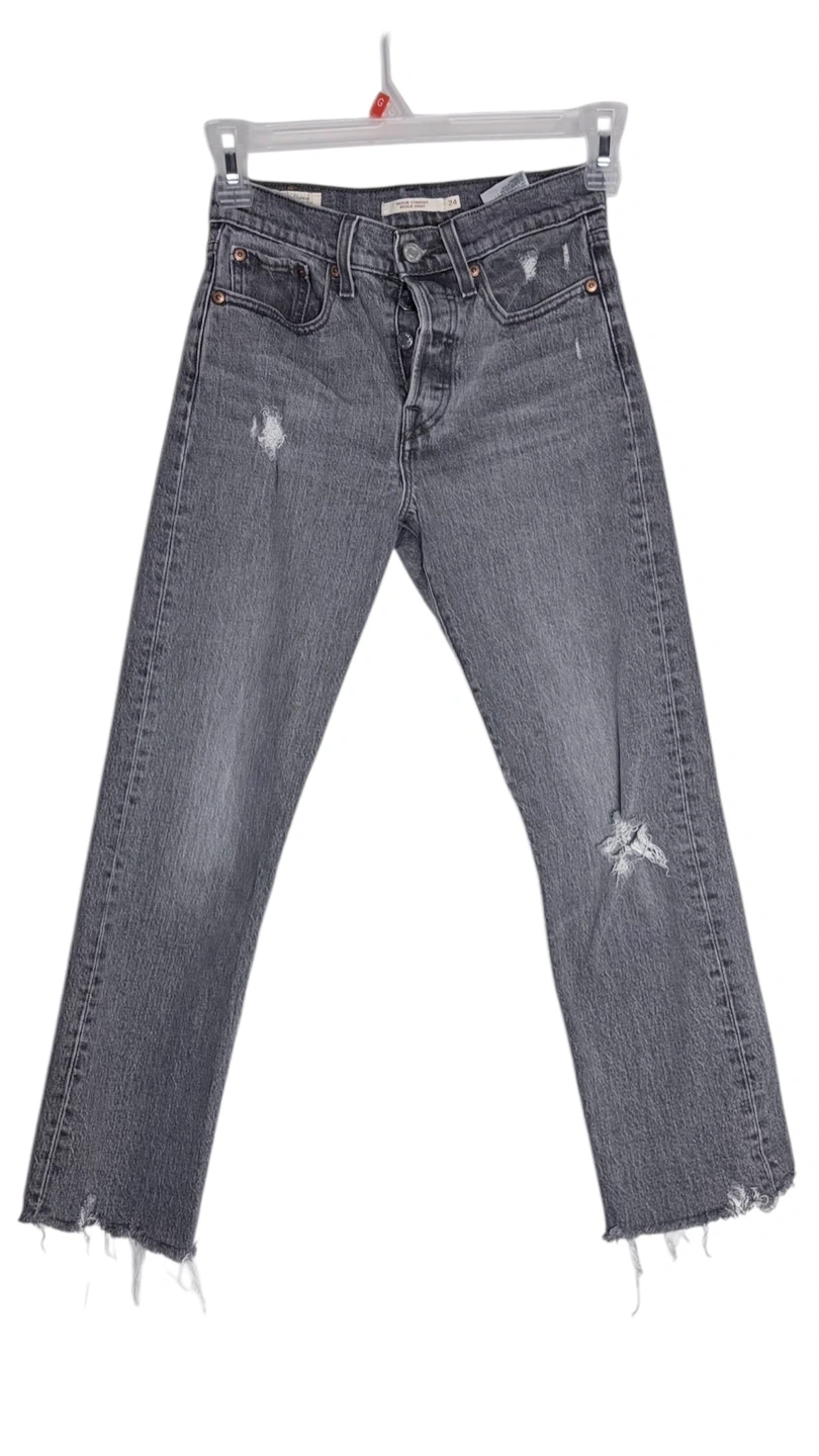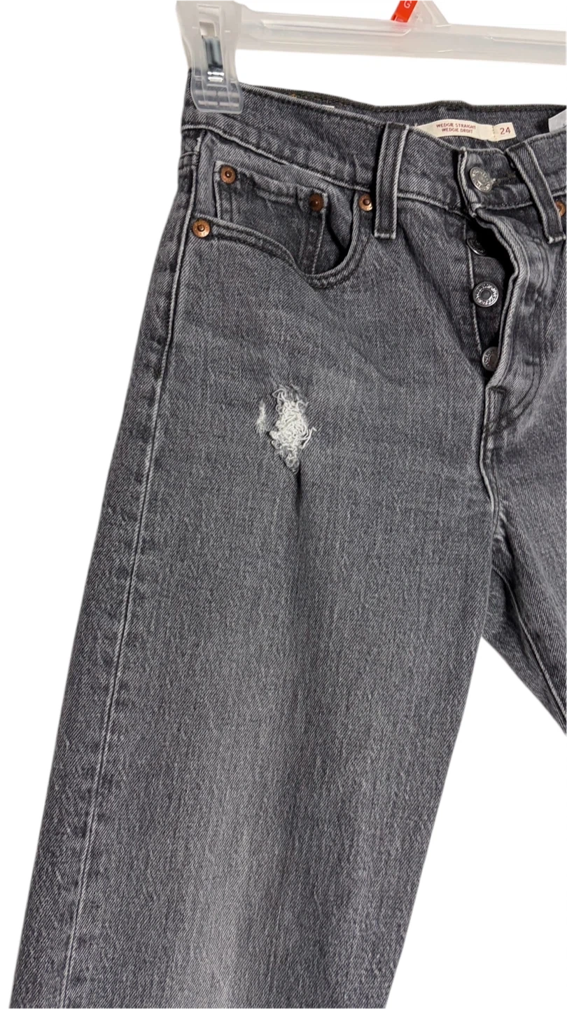 Levi's Premium Wedgie Straight Gray Distressed Denim Jeans