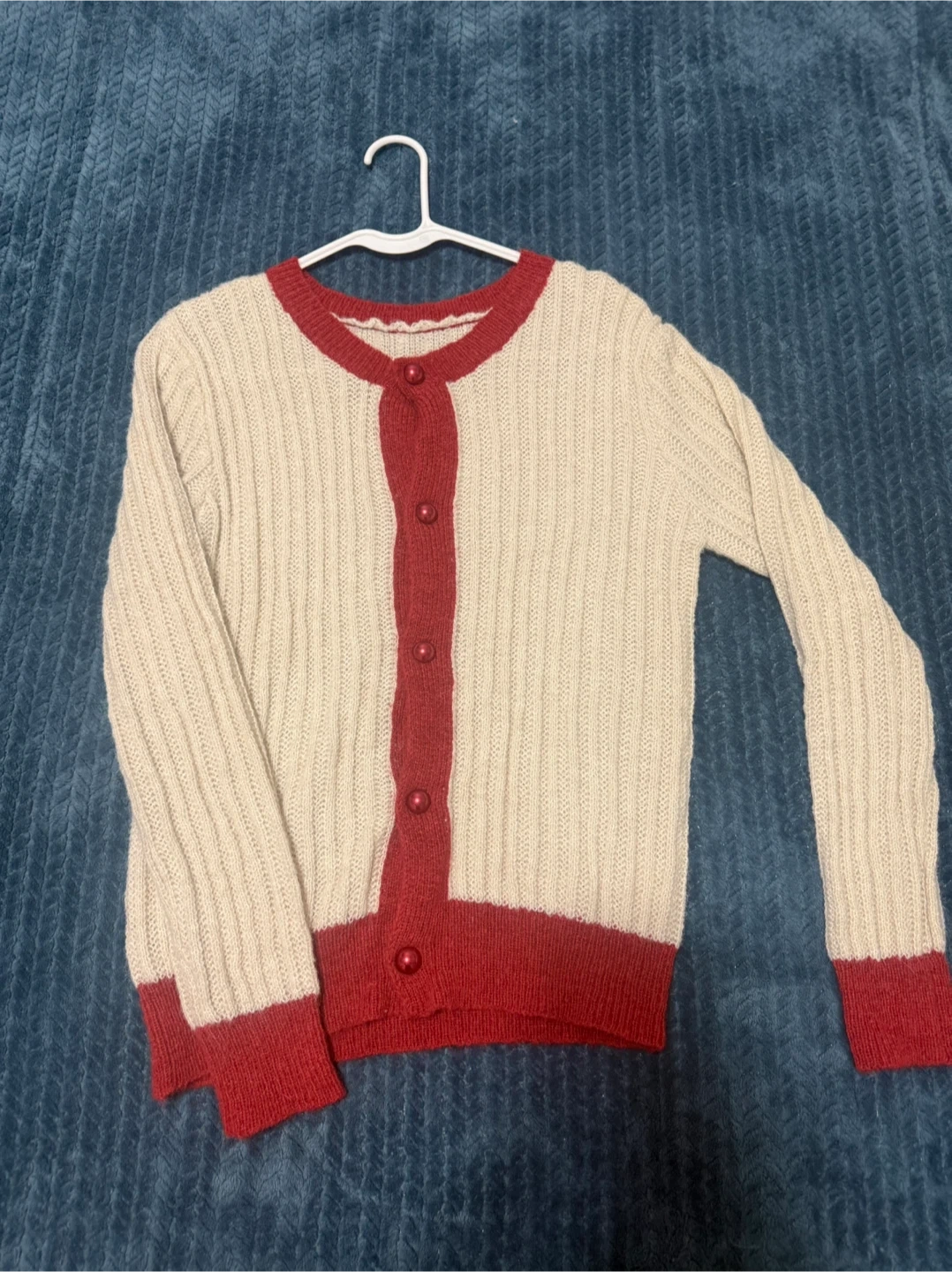Buy & SellCream and Red Button CardiganCream and Red Button Cardigan$8Cozy knit cardigan with a cream body and red trim. Features a round neckline and button-up front. Perfect for layering over tops.ConditionNewSizeSBrandCider WHERE TO MEETDeliverysView MapSELLERverifiedJimenaKew Gardens650 reviews0 chats·0 favorites·3 viewsSEND CHAT TO SELLERHi Jimena! I’m interested in your listing.Hi Jimena! I’m interested in your listing.Get the Karrot app to chatSign In to chat