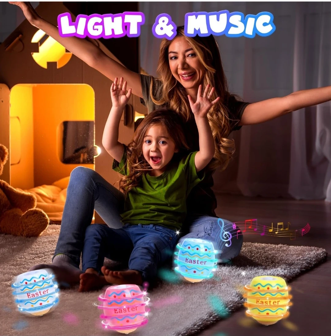 Light Up Musical Easter Egg Spinners - Set of 4