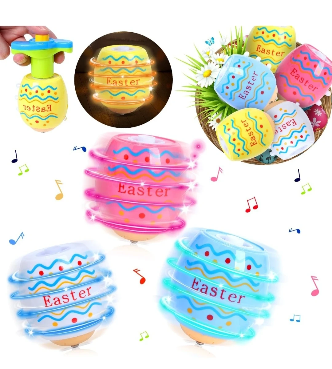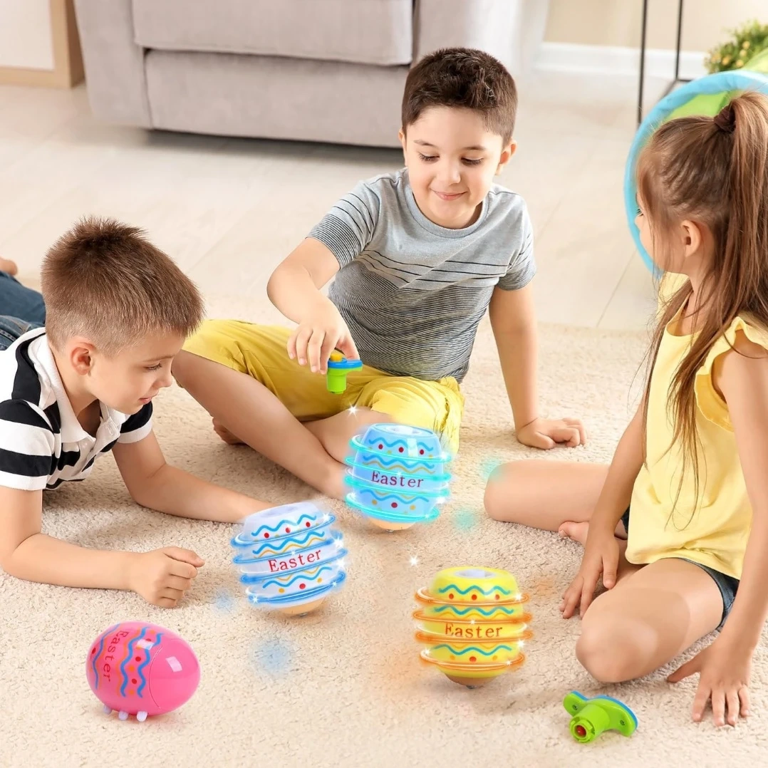 Light Up Musical Easter Egg Spinners - Set of 4