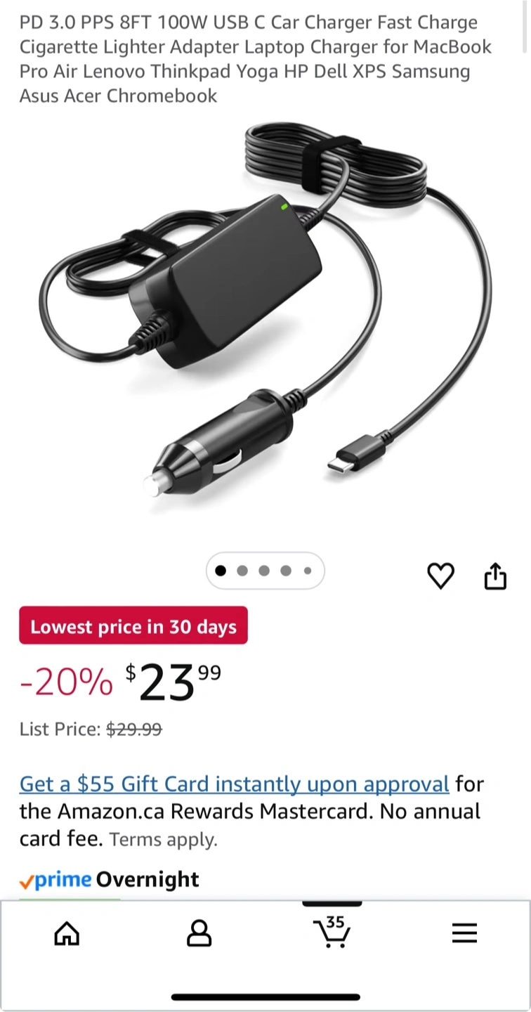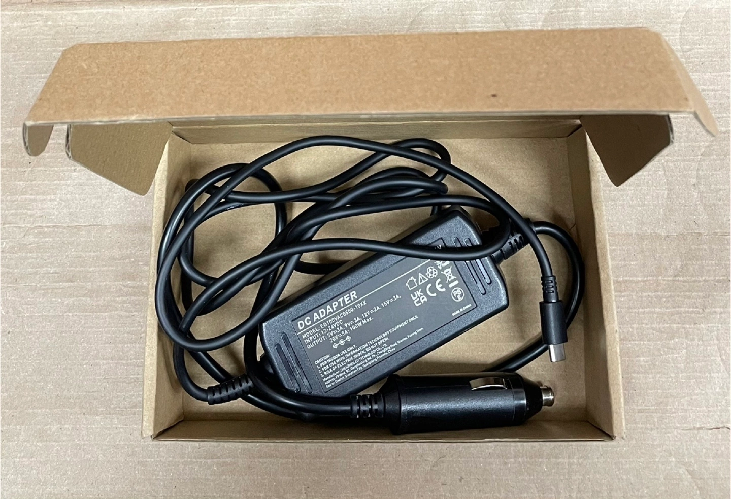 This car charger is 100W with PD 3.0 and PPS support. It has a USB-C port for fast charging laptops and devices. Includes original box.