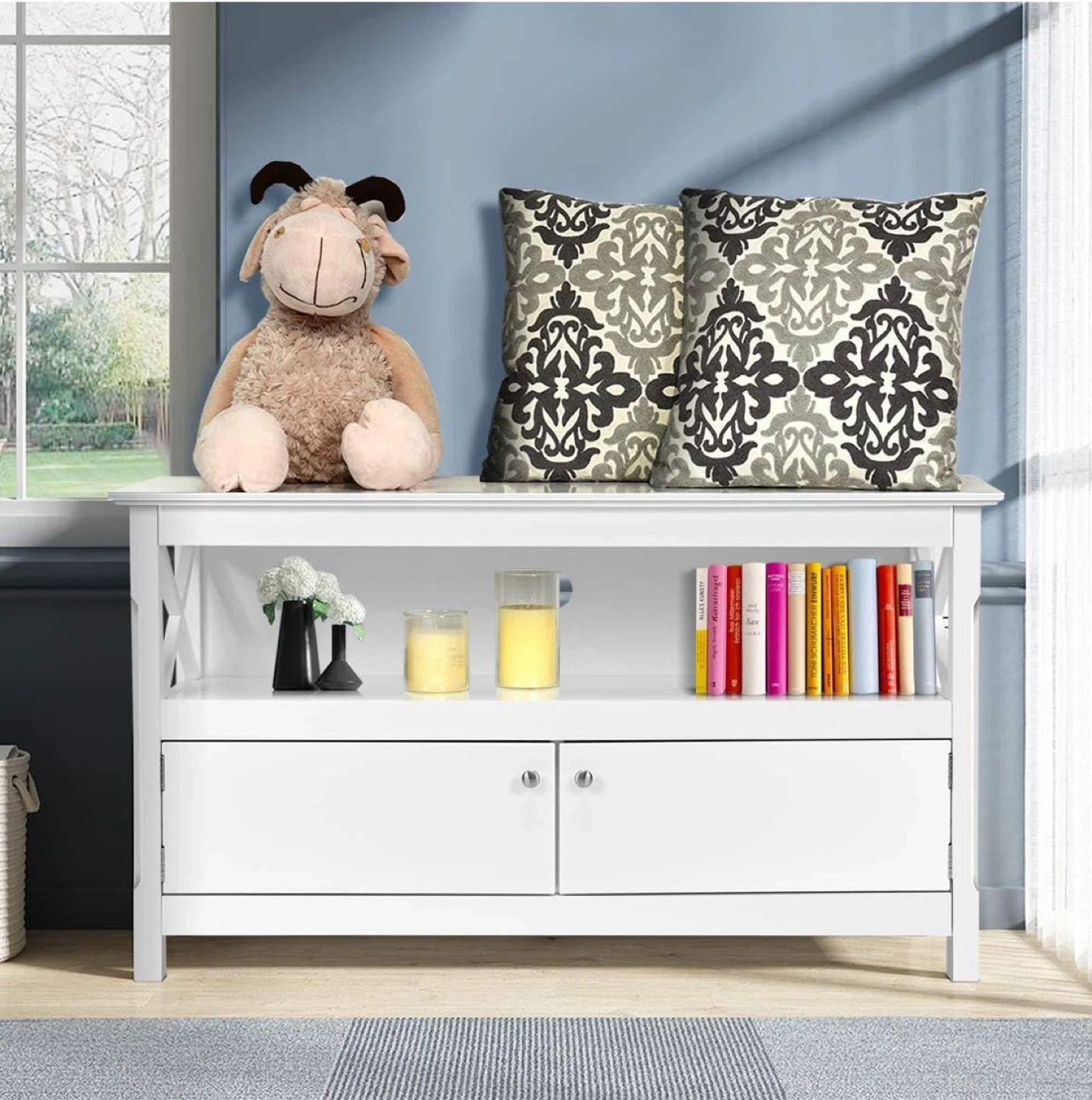 White TV Stand with Storage