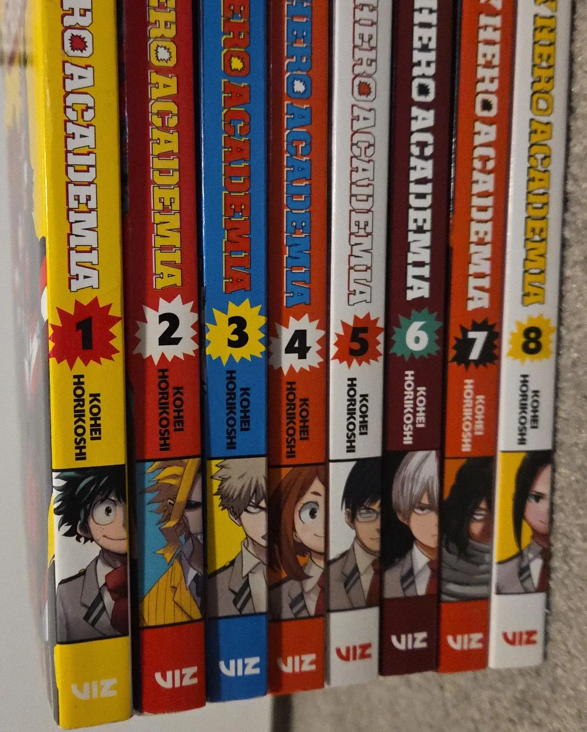 Collects volumes 1 through 8 of the My Hero Academia manga series by Kohei Horikoshi. These volumes are published by VIZ Media. They are in good condition.