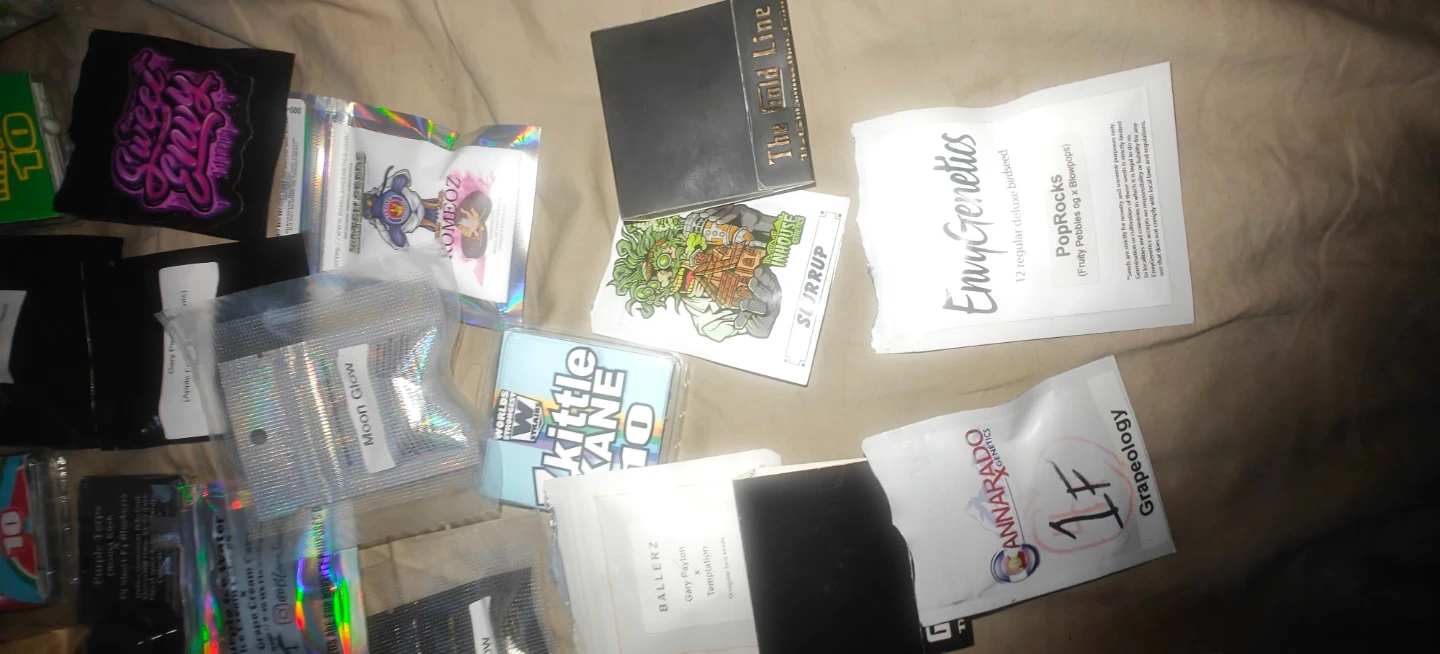A collection of various seed packets. Includes strains like 'Big Buffalo', 'Gary Payton', and 'Moon Glow'. These are for collection and novelty purposes only. Please follow all your local laws in accordance with the cannabis act.