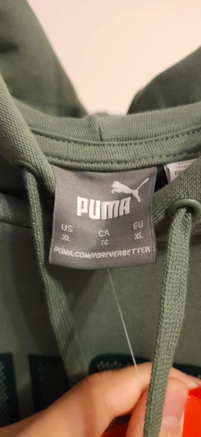 This is a Puma Matrix Hoodie FL in eucalyptus colour. It's a size XL. This hoodie has a front kangaroo pocket and an adjustable drawstring hood.