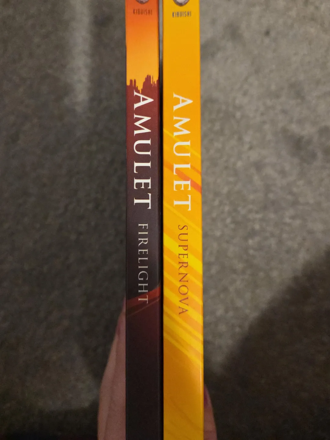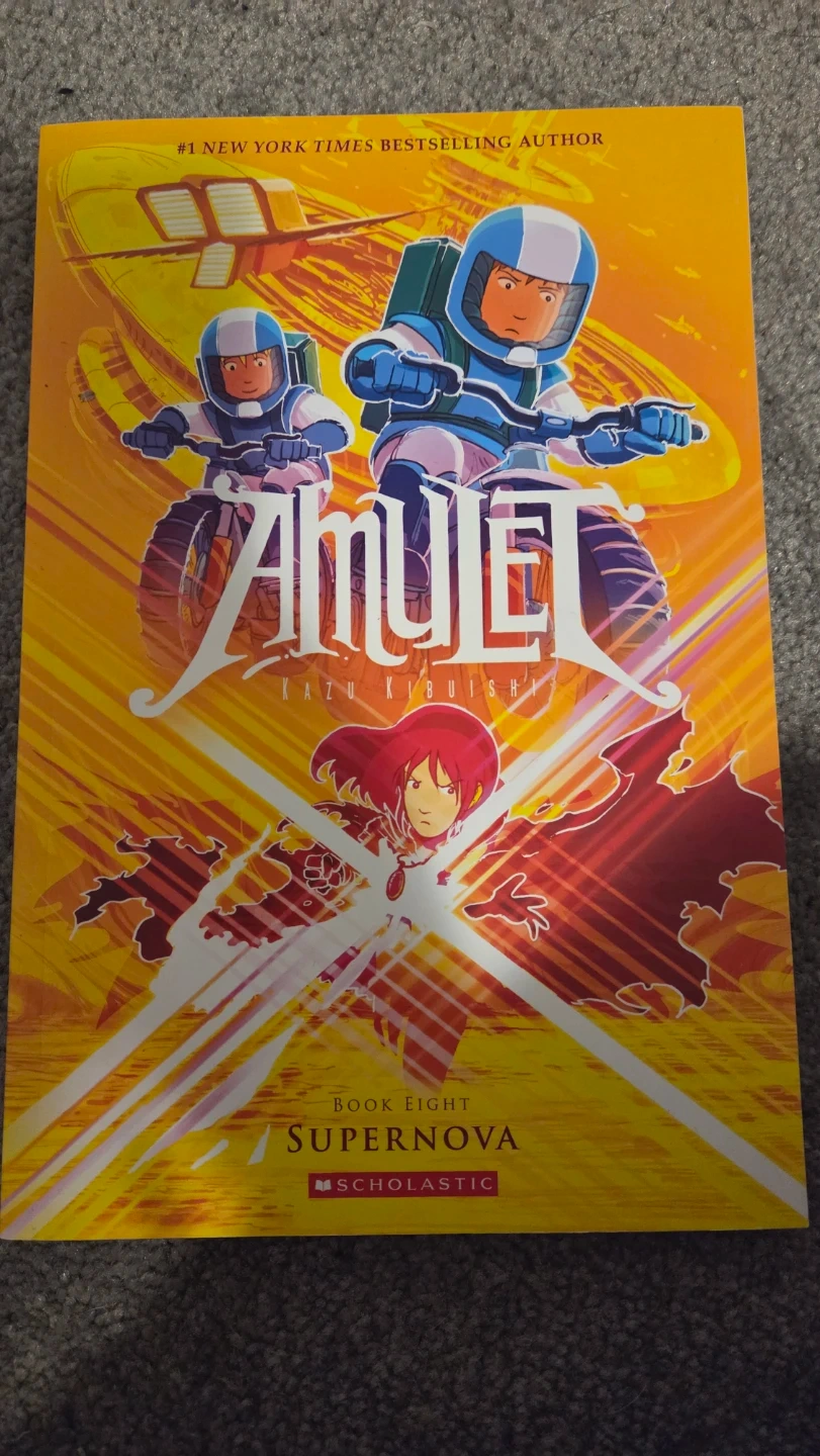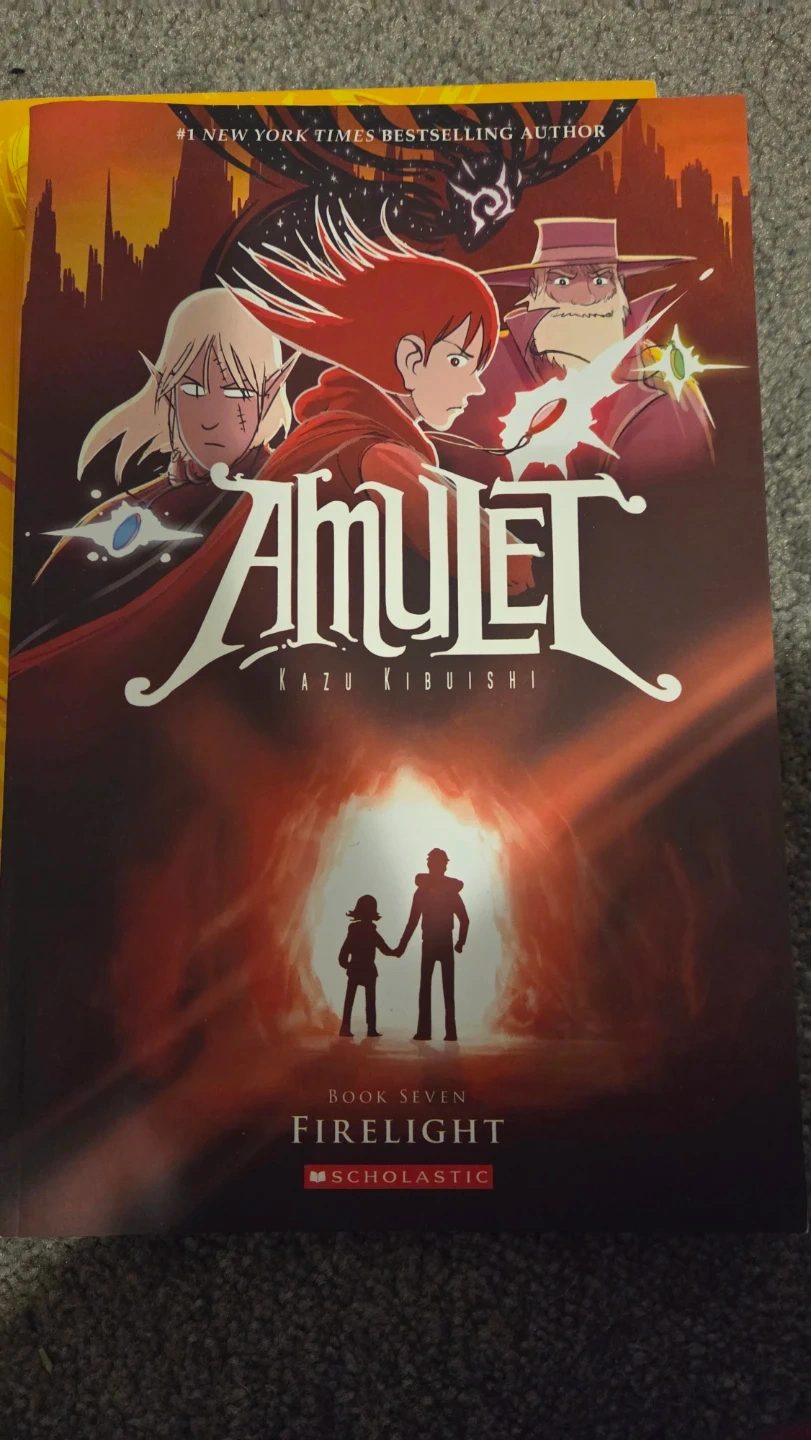 Two graphic novels from the Amulet series by Kazu Kibuishi. Includes Book Seven: Firelight and Book Eight: Supernova. These books are published by Scholastic.