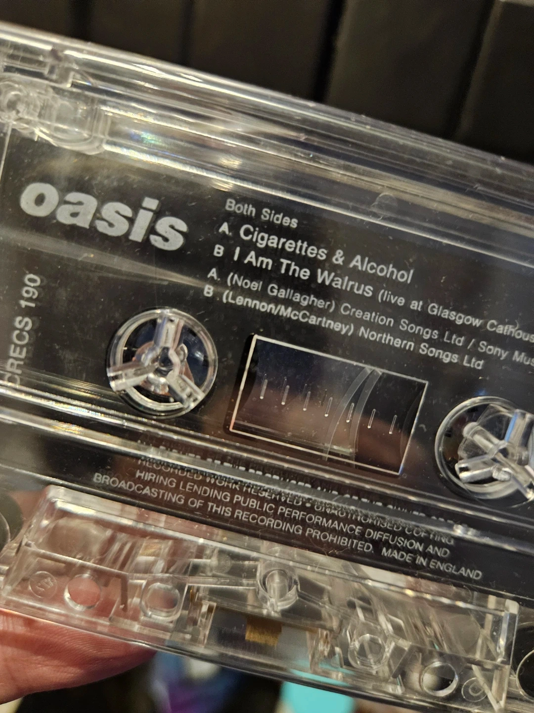 Very rare collectable cassette single of OASIS - CIGARETTES & ALCOHOL & I AM THE WALRUS on Creation Records (1994).