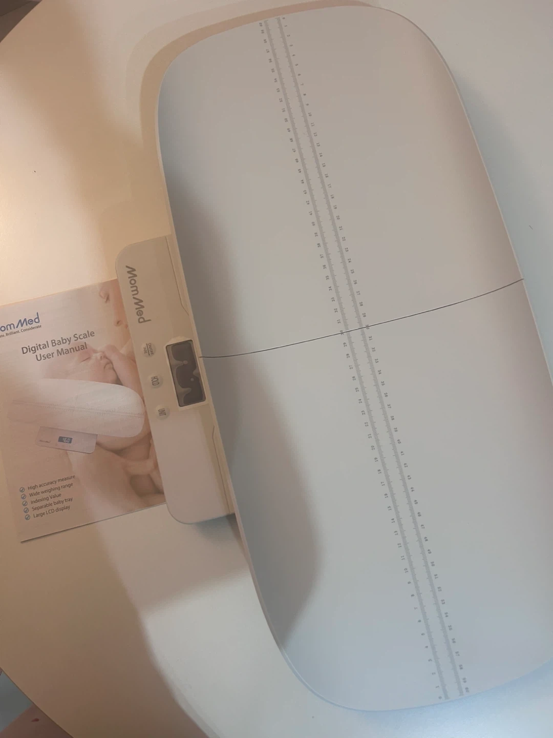 MomMed digital baby scale for accurate measurements. It has a wide weighing range and a large LCD display. Includes the user manual.