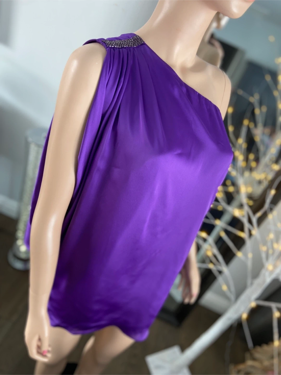 NWT: Aqua Purple One Shoulder Embellished Satin Mini Dress (Size 0 and Size 10) 414 903
