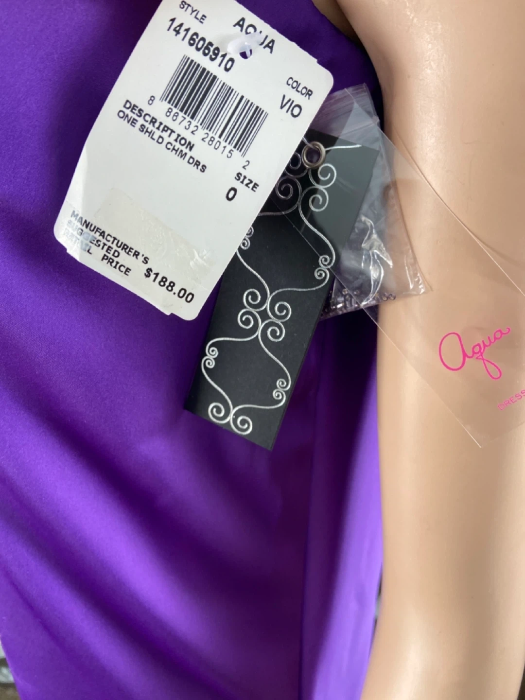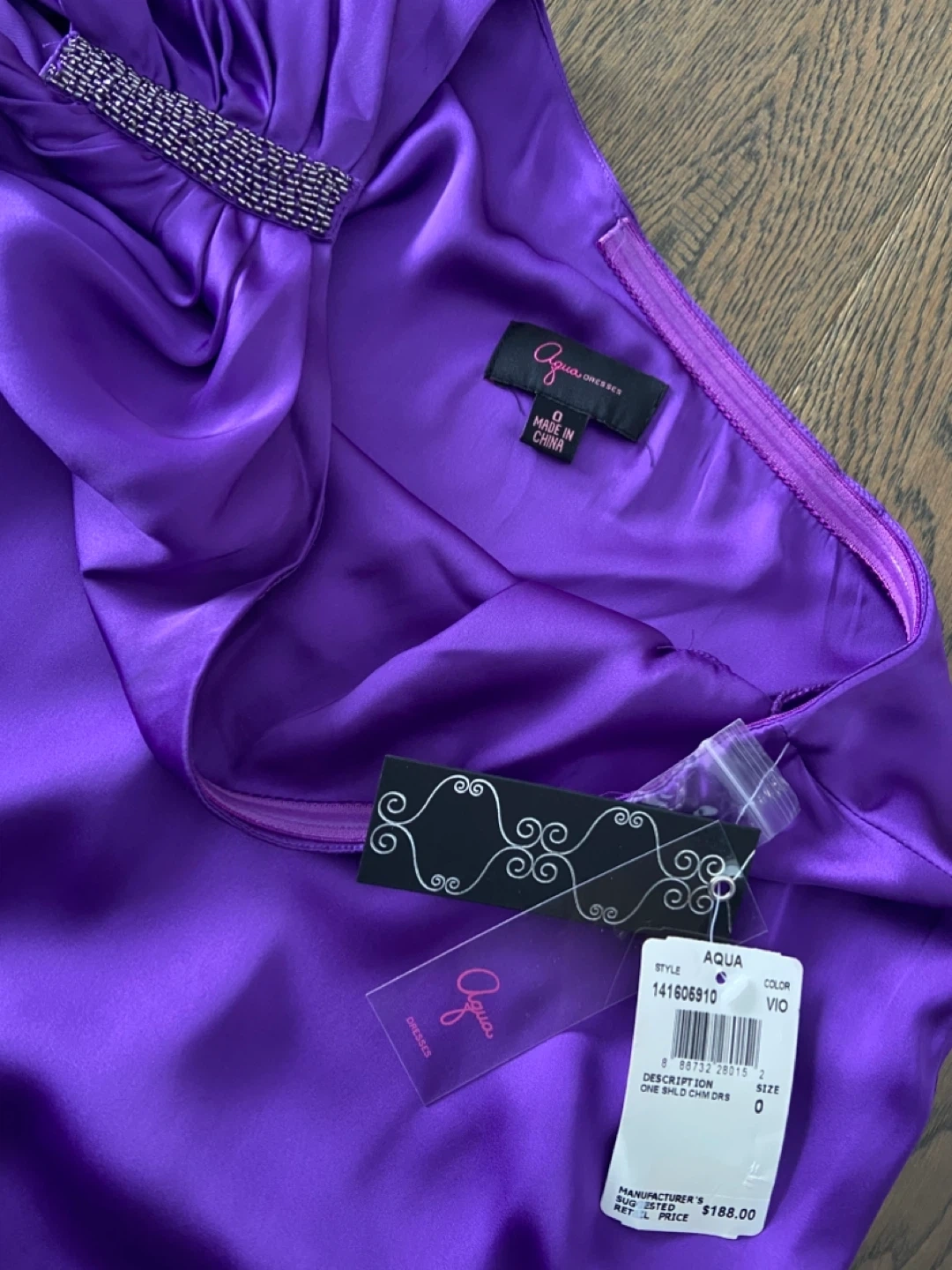 NWT: Aqua Purple One Shoulder Embellished Satin Mini Dress (Size 0 and Size 10) 414 903