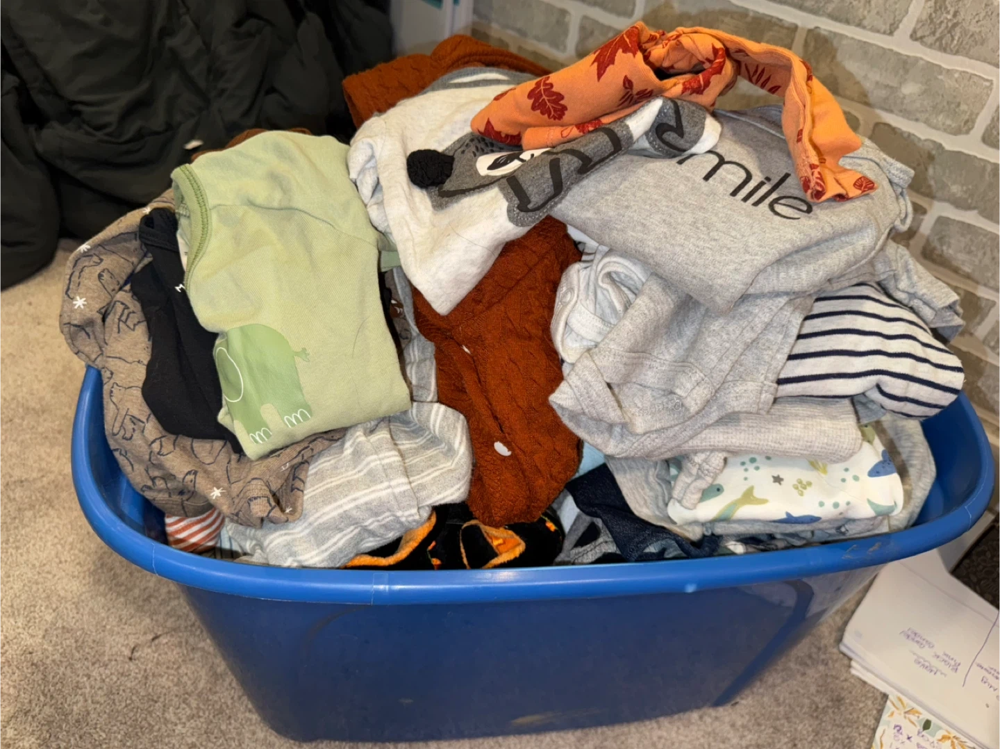Tote of baby boy clothes