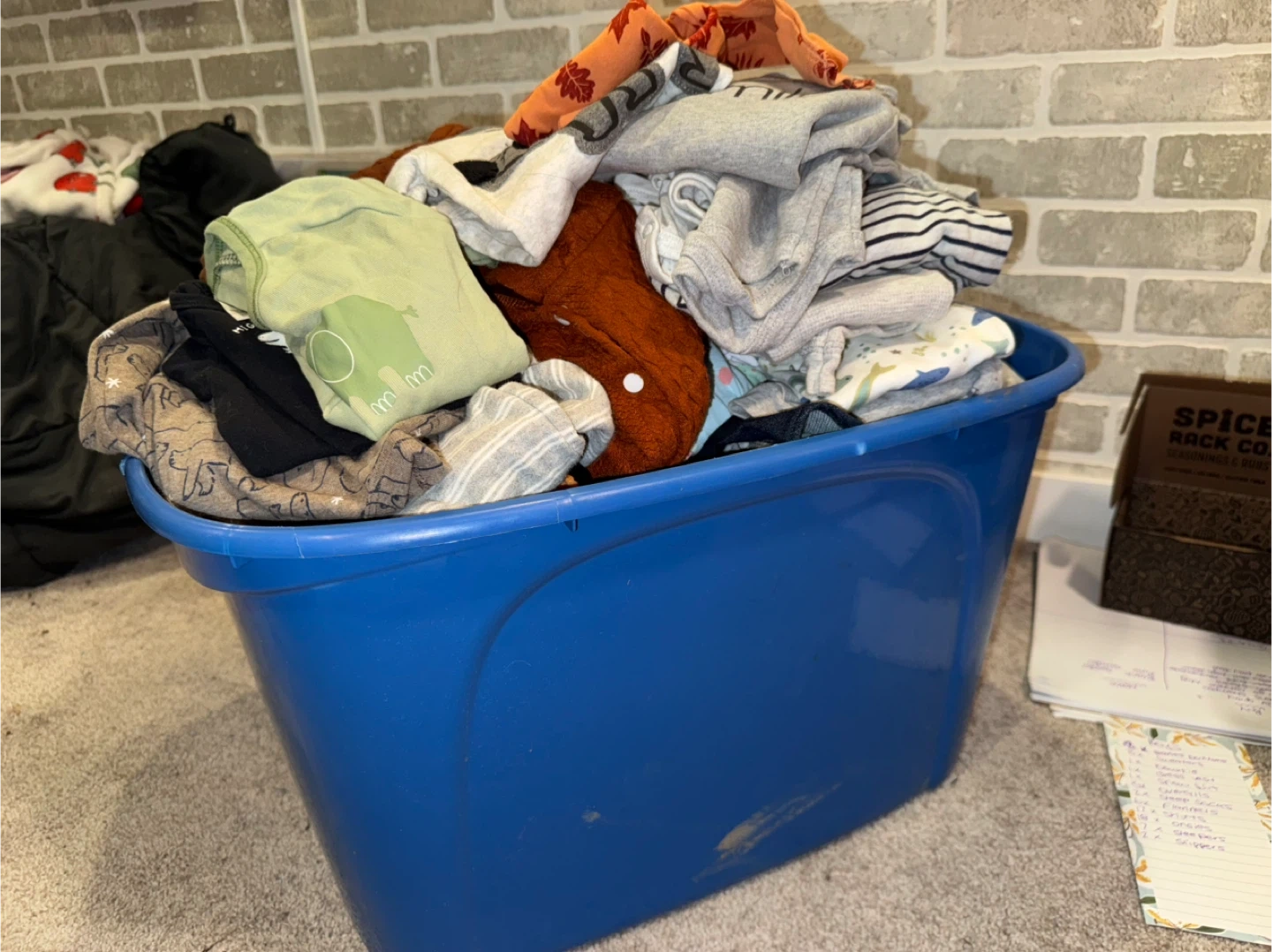 Tote of baby boy clothes