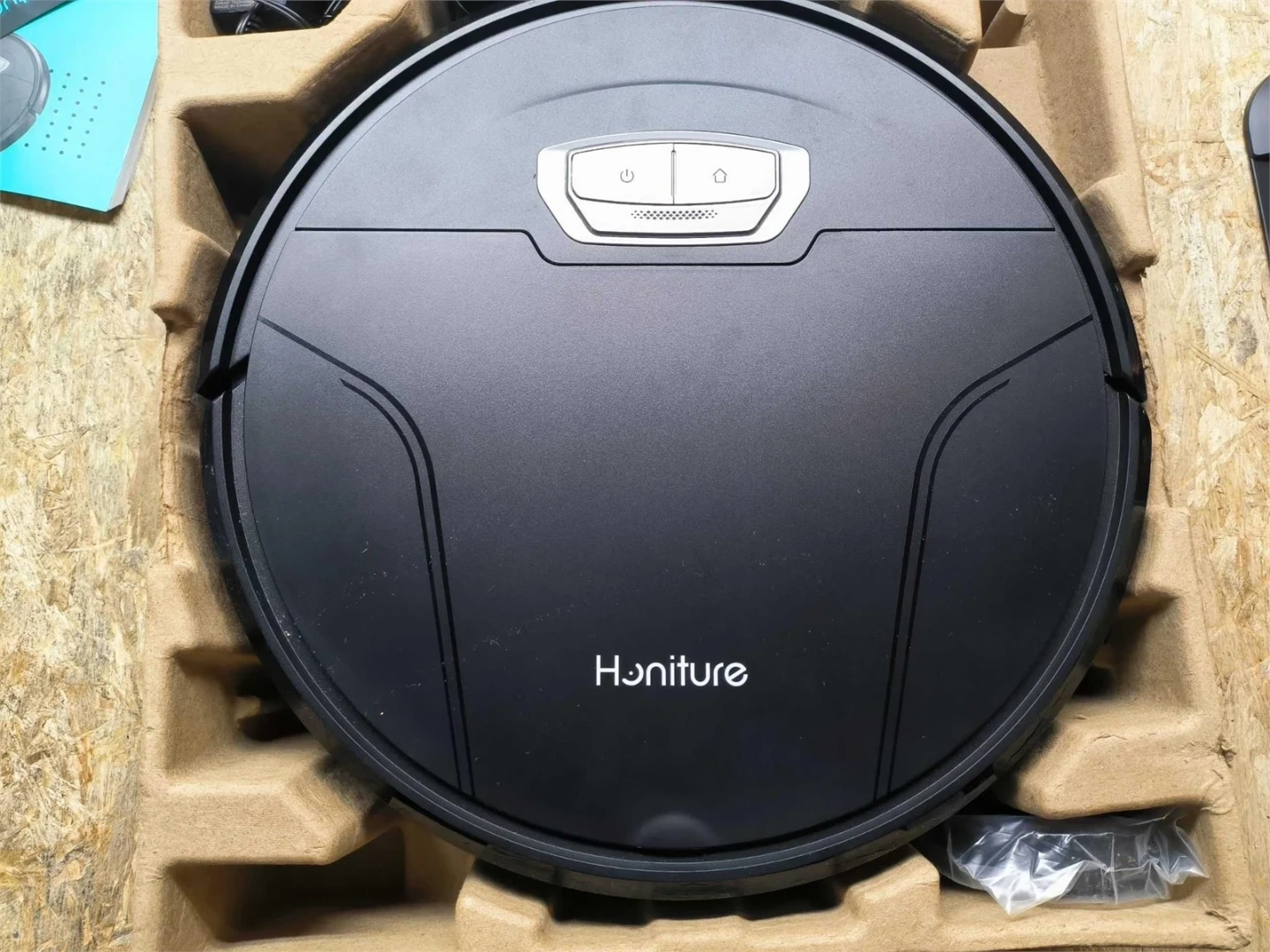 This is the Honiture G20 Pro Robot Vacuum Cleaner. It includes the robot, user manual, power adapter, and a mopping cloth. It's designed for cleaning your floors.