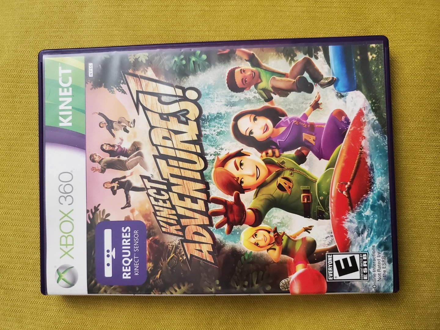 This is the Kinect Adventures! game for Xbox 360. It requires the Kinect sensor to play. The game includes various adventure-themed minigames. It's rated E for Everyone.