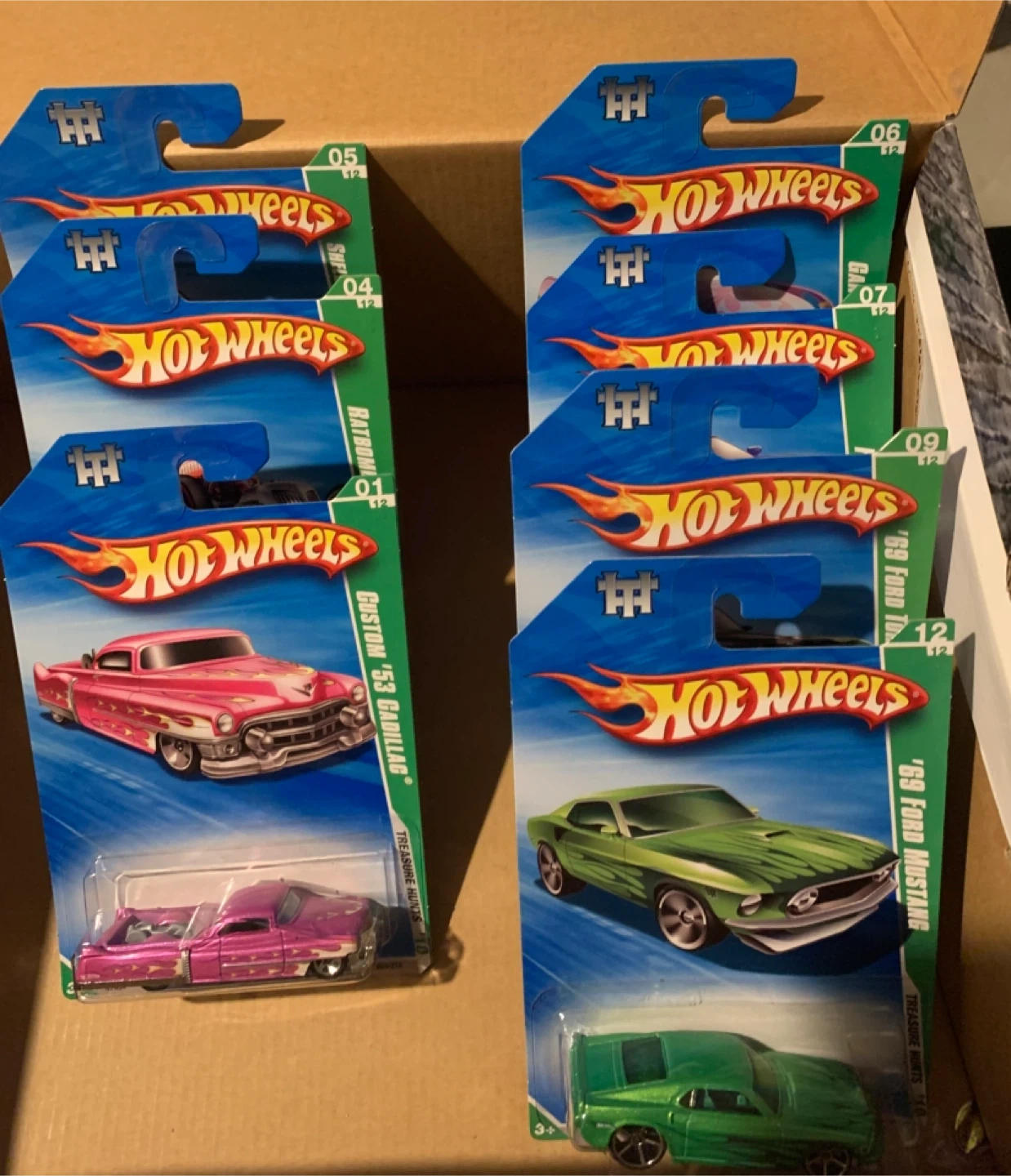 New PRISTINE CONDITION (still in package) 7 Hot Wheels Treasure Hunts 2010. Selling for $65 CAD for the entire lot (FIRM). NO splitting or selling separately. Smoke free home.