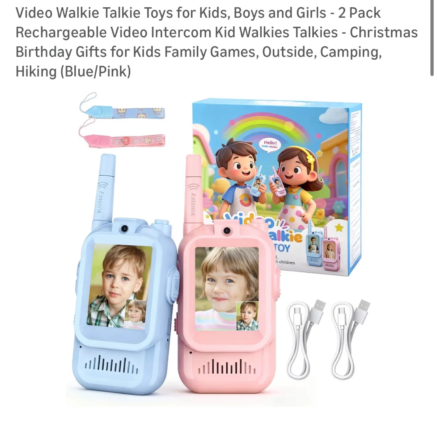 Video Walkie Talkie Toys for Kids, Boys and Girls - 2 Pack Rechargeable Video Intercom Kid Walkies Talkies - Christmas Birthday Gifts for Kids Family Games, Outside, Camping, Hiking (Blue/Pink)