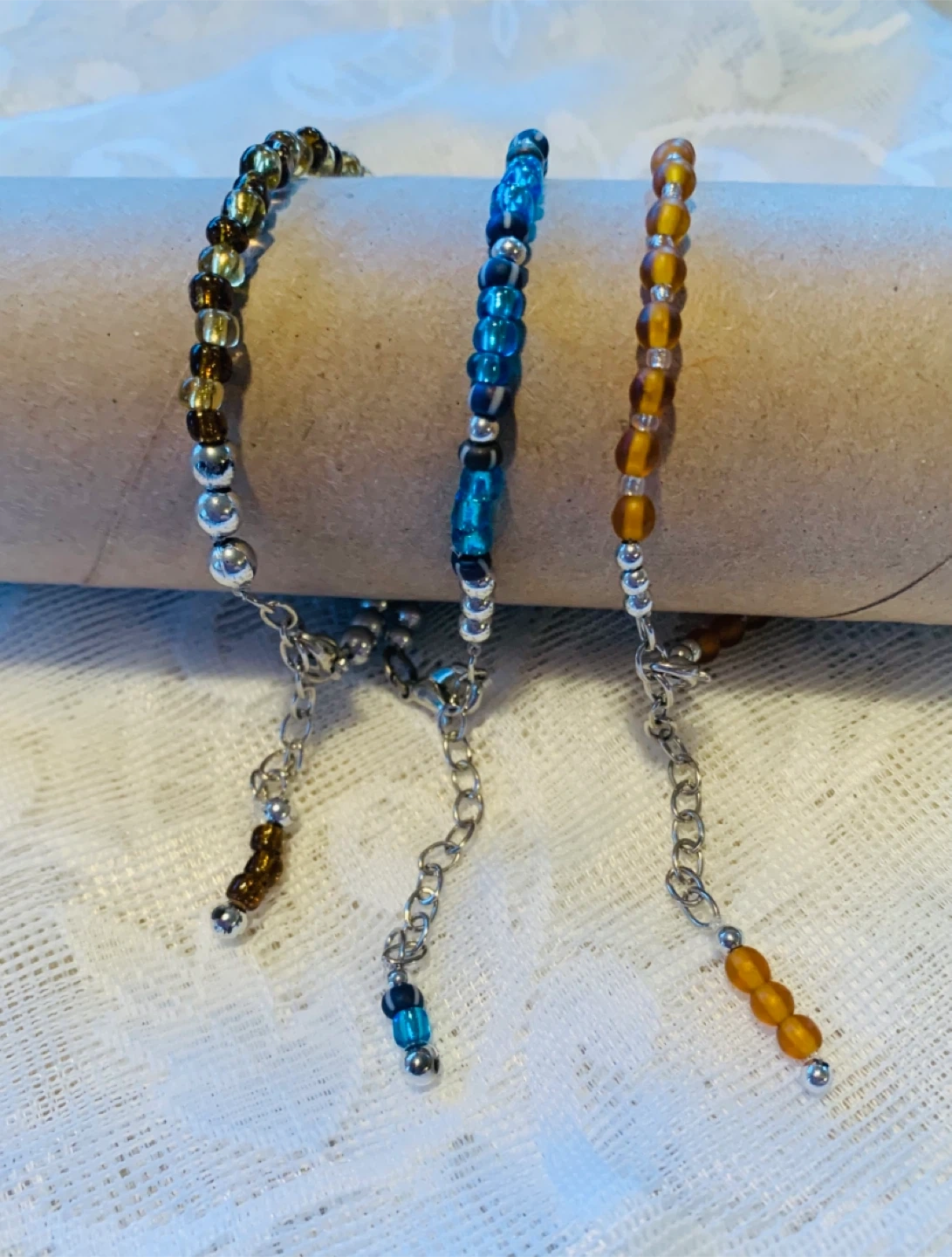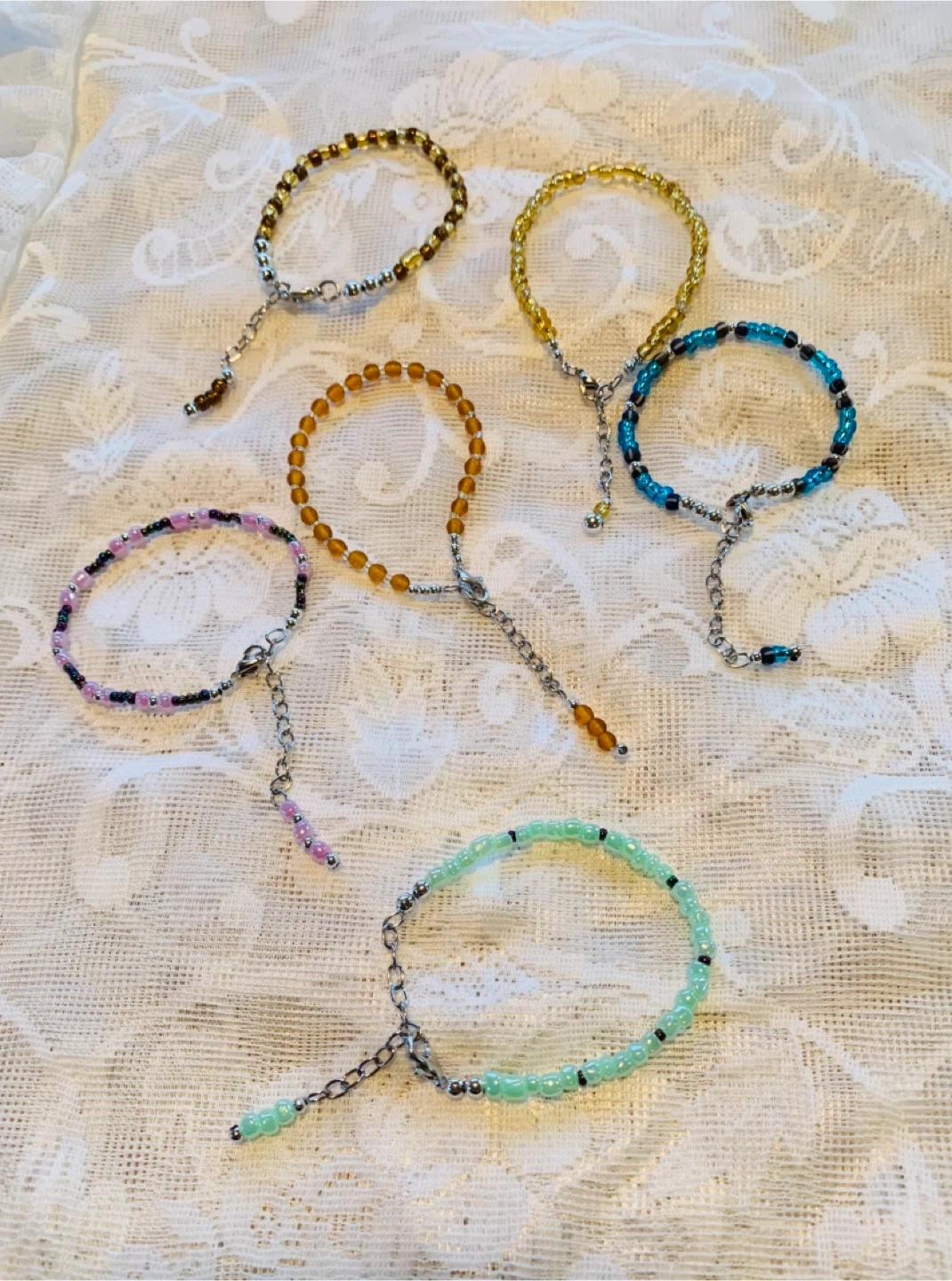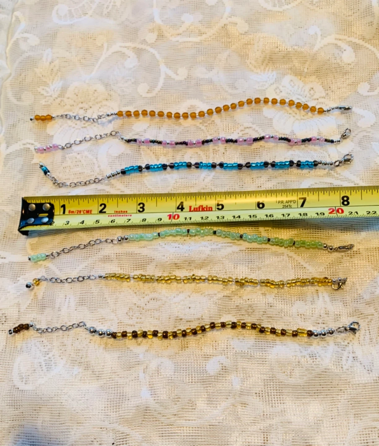 Handcrafted adjustable bracelets (can be worn as anklets) with lobster claw clasp. Measurement in pictures. Smoke free home