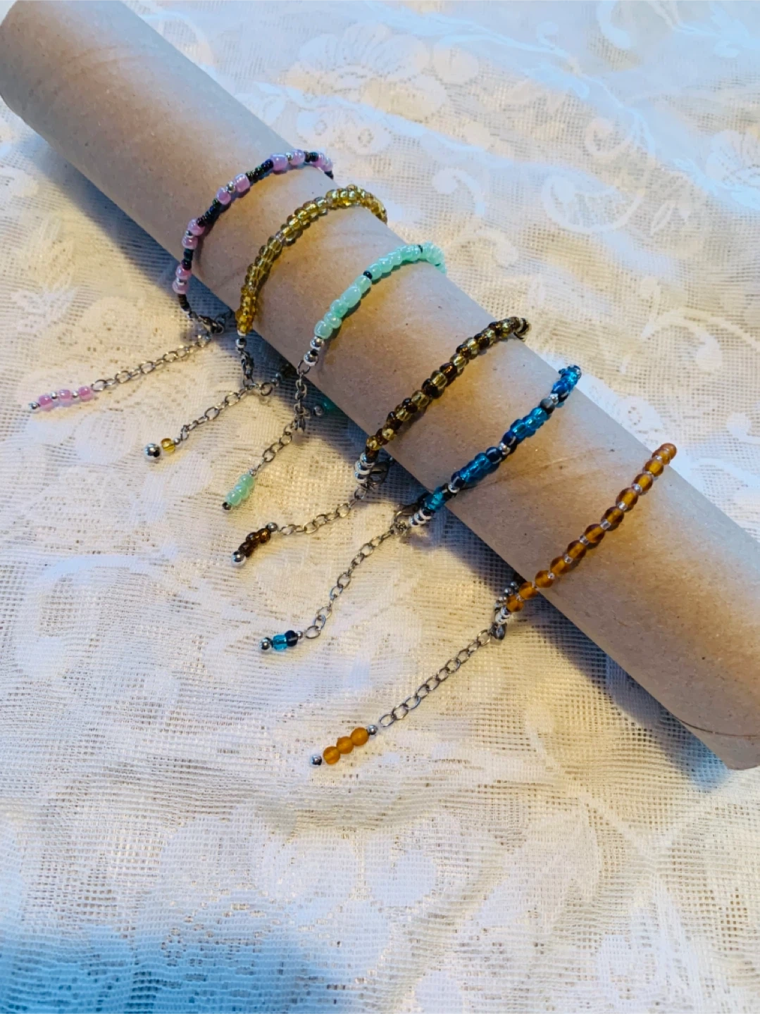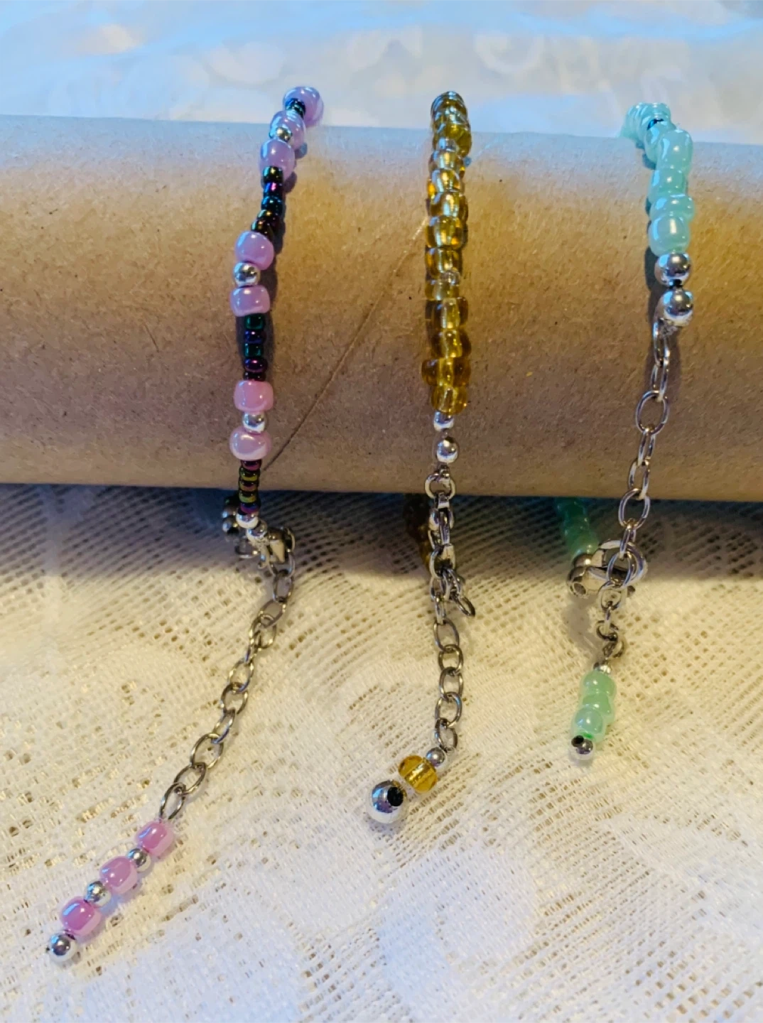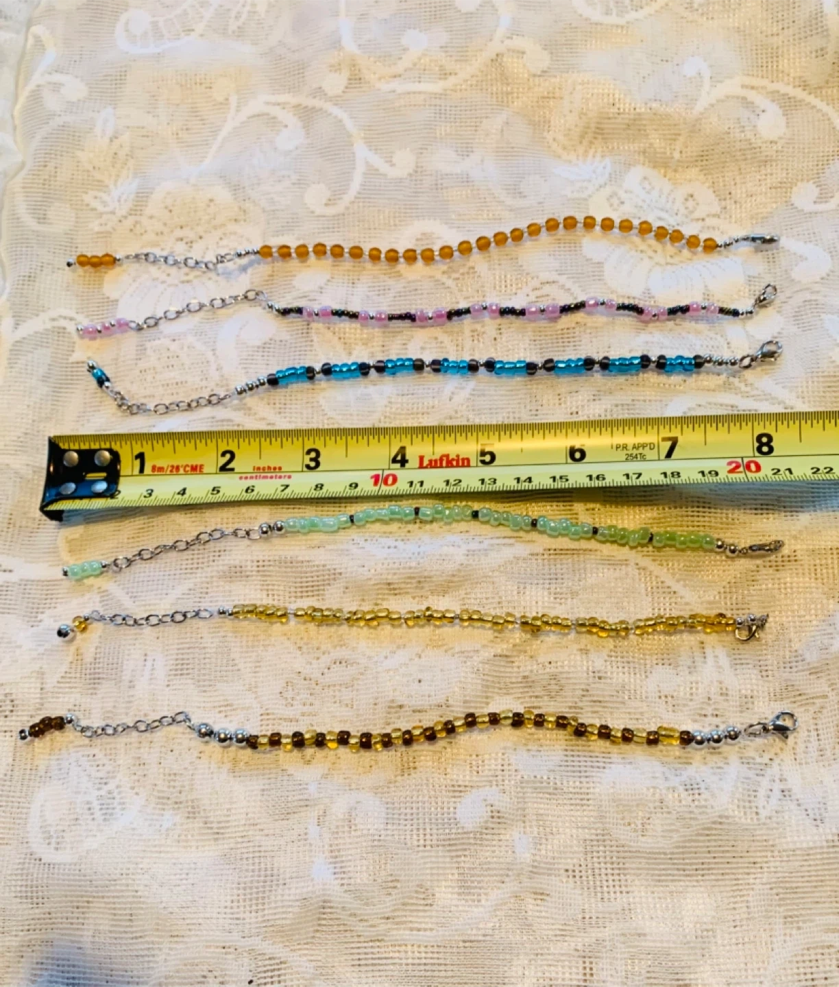 Handcrafted adjustable bracelets (can be worn as anklets) with lobster claw clasp. Measurement in pictures. Smoke free home