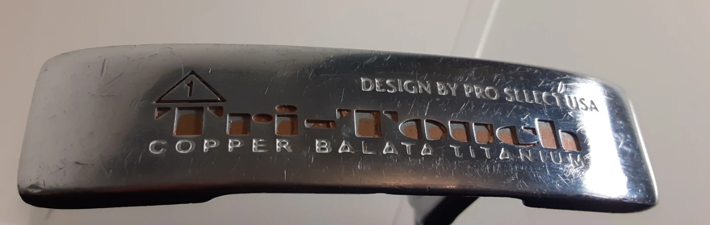 This is a Tri-Touch putter designed by Pro Select USA. It features a copper insert and a titanium construction. It's a great club for improving your short game on the greens! In used but good condition. Right-handed.