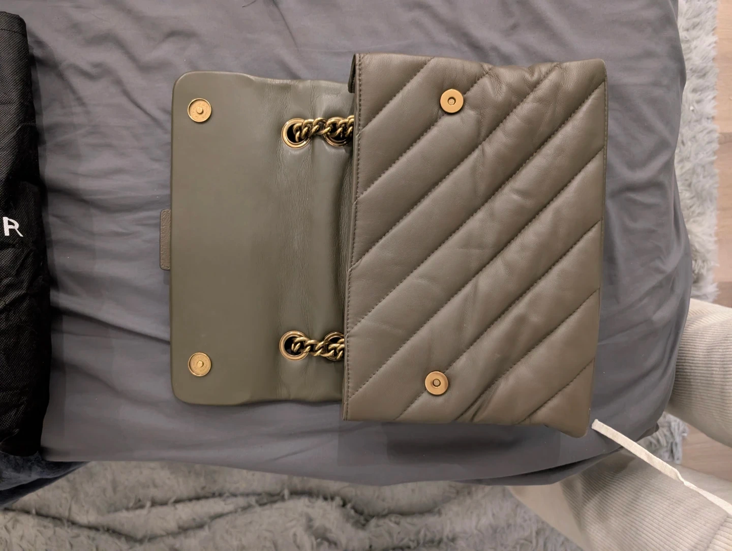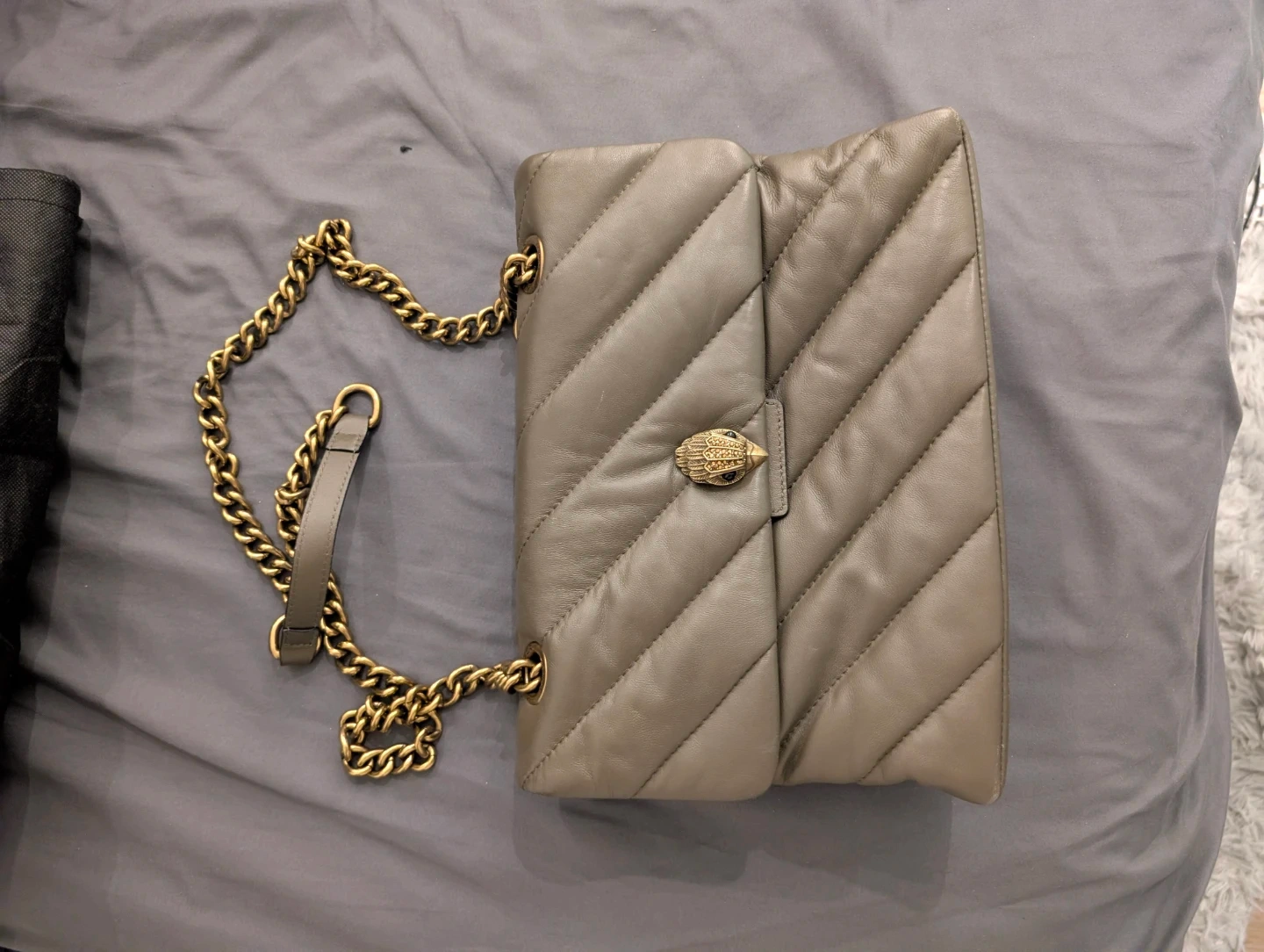 A stylish quilted leather shoulder bag from Kurt Geiger London. It features a gold-tone chain strap and the brand's signature eagle clasp. Includes the original dust bag.