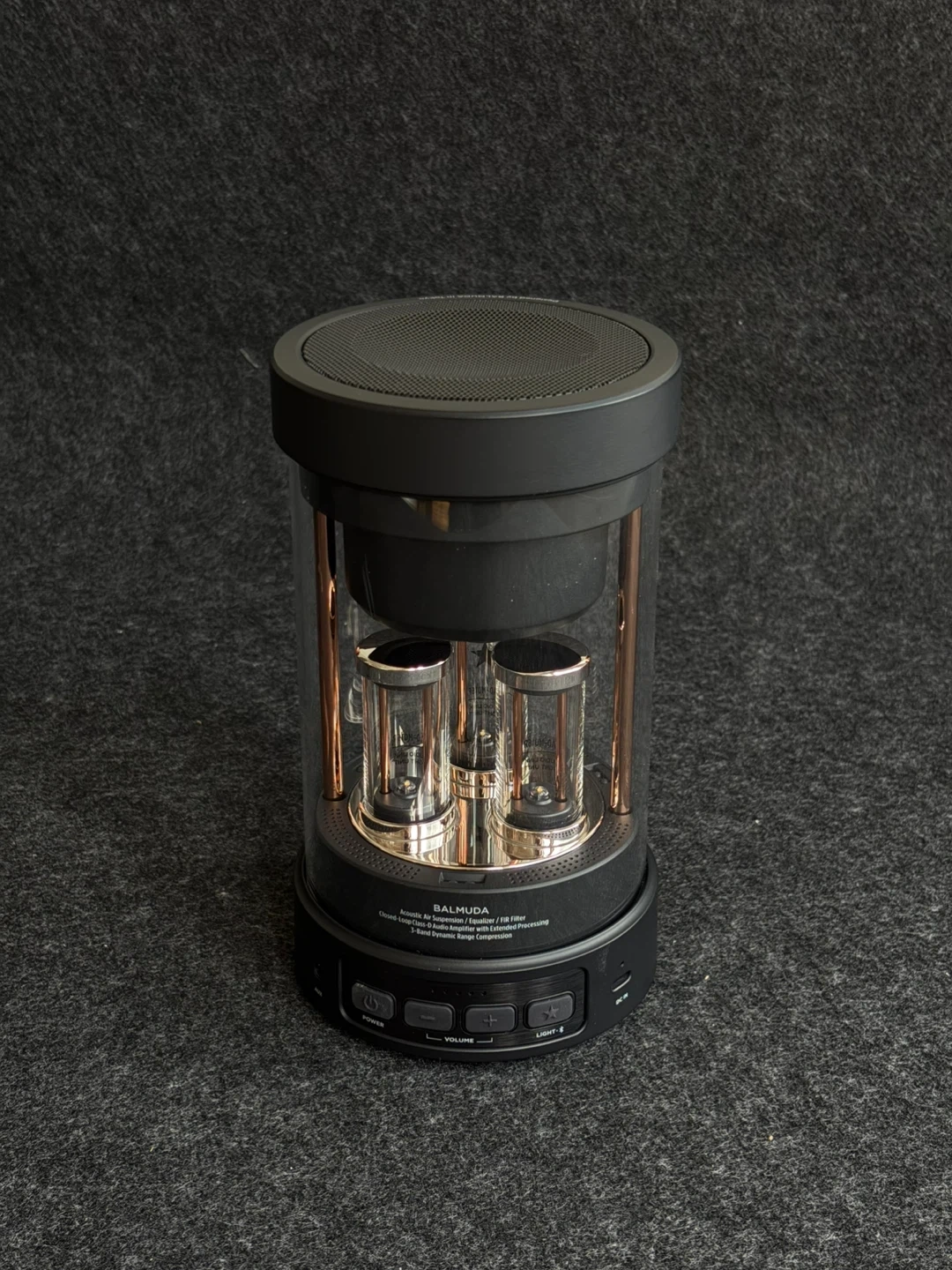 This is a beautifully designed portable Bluetooth speaker with BALMUDA’s signature warm LED light that syncs with the music, creating a soft, ambient glow. Sound is clear and balanced, perfect for home listening, small gatherings, or winding down in the evening. Rechargeable and easy to move from room to room.