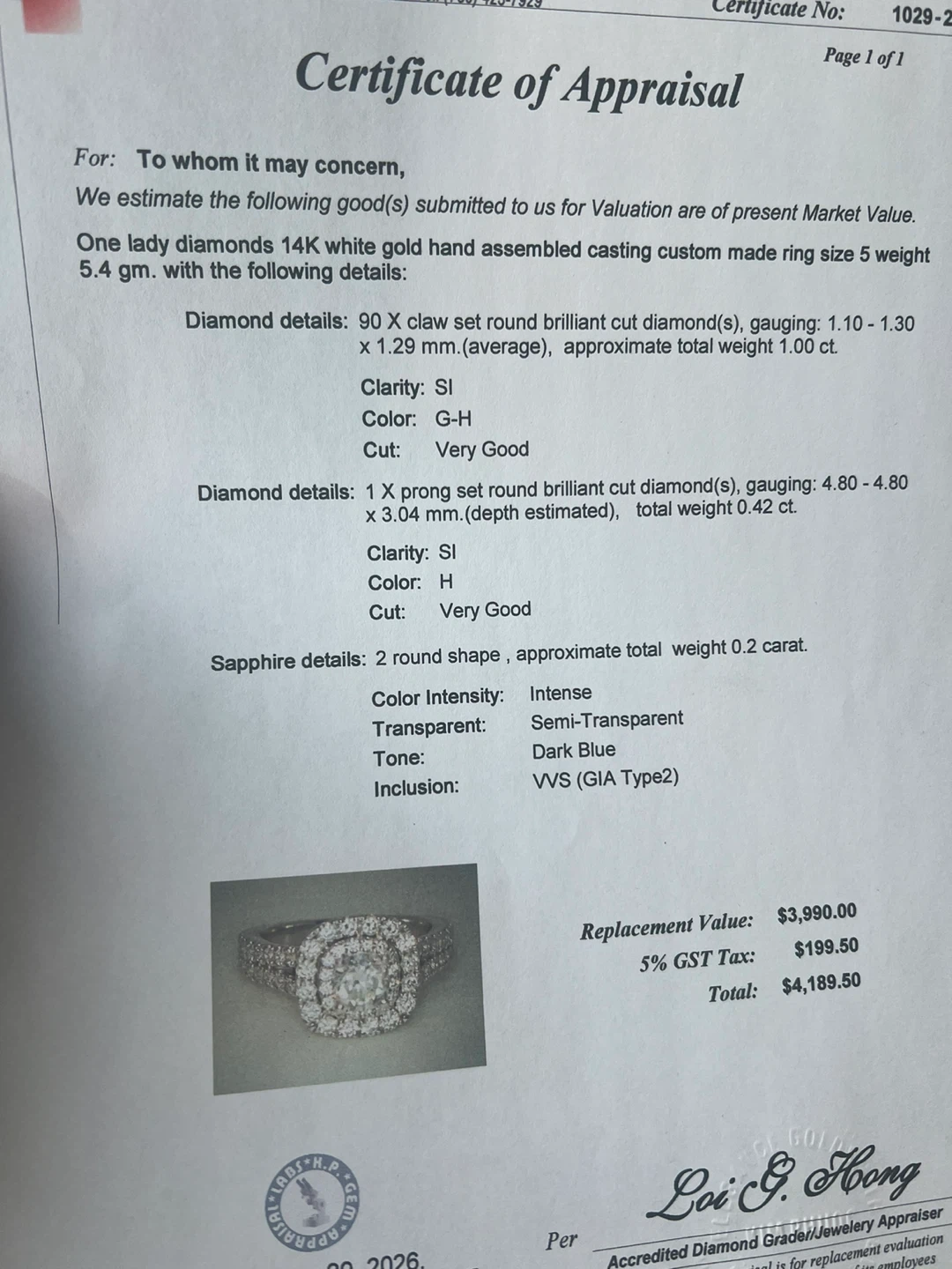 14 k Vera Wang ring w/appraisal