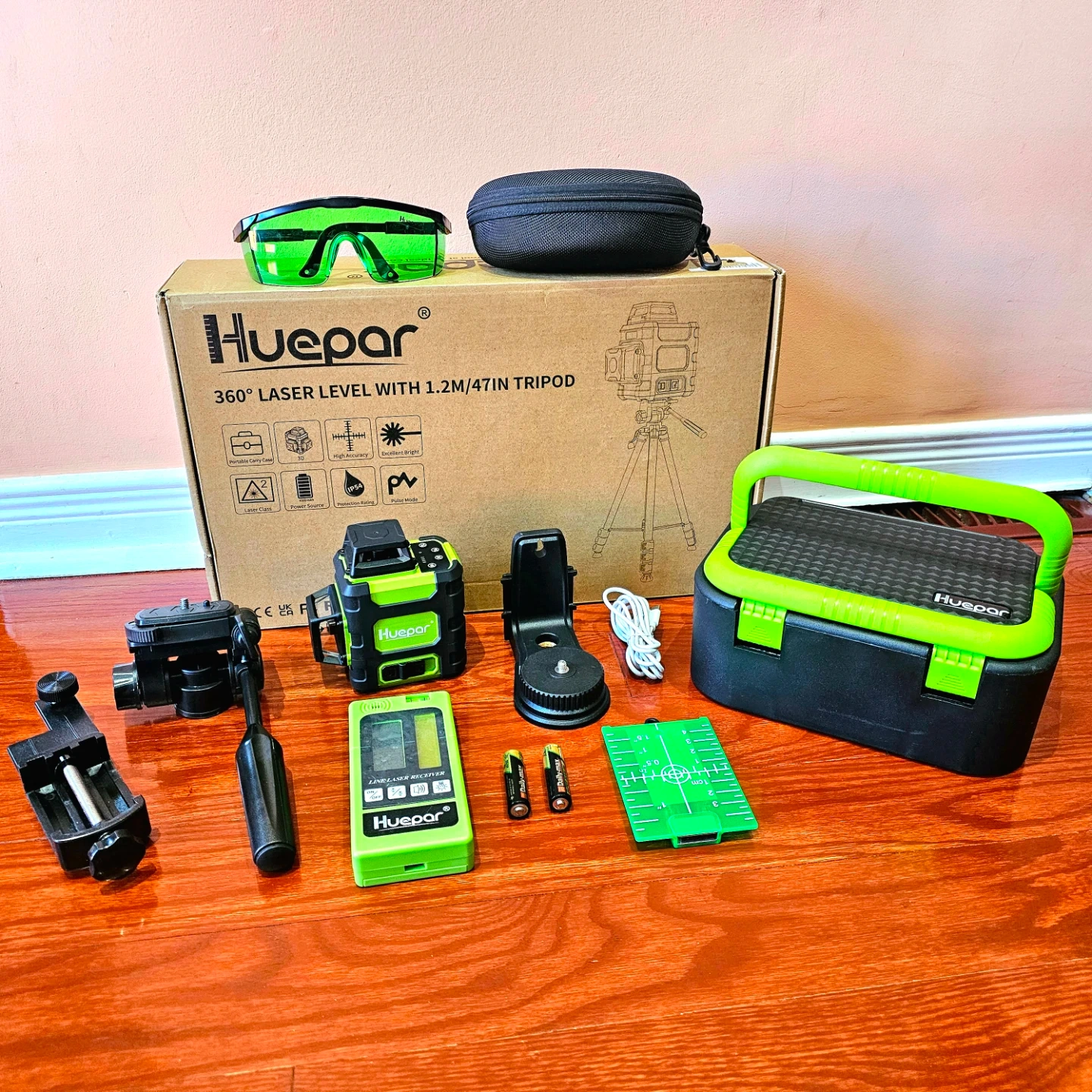 Huepar 3x360 Green Laser Level 3D Self Leveling Kit