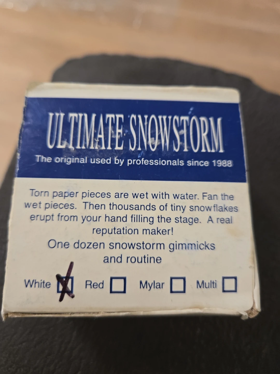 Ultimate Snowstorm is a legendary illusion trusted by professional performers since 1988. What begins as a few torn pieces of paper visually explodes into thousands of floating snowflakes, filling the entire stage and creating a jaw-dropping finale.