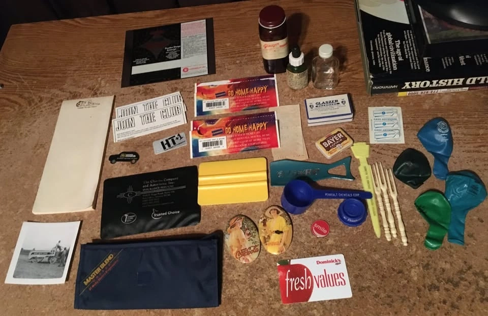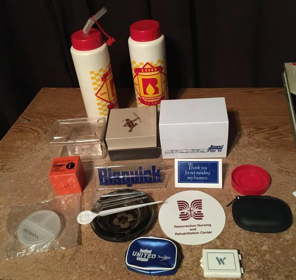 Huge lot of vintage advertising items: Coca Cola, Zayre, Whities, Blockbuster, Milky Way, Snickers, Sears, Dominick's, Walgreens, and more.