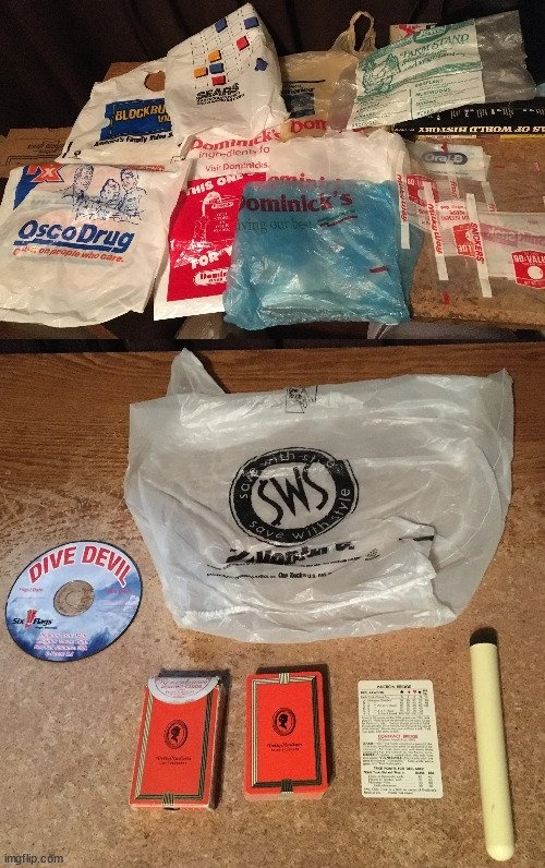 - Assorted Plastic Bags (Walgreens, Dominick's, Sears, Blockbuster)