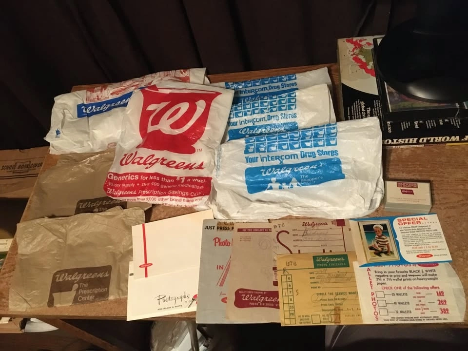 - Vintage Walgreens Photo Envelopes, Prescription Box, Bags (envelopes vary in age, bags from 90s/00s)
