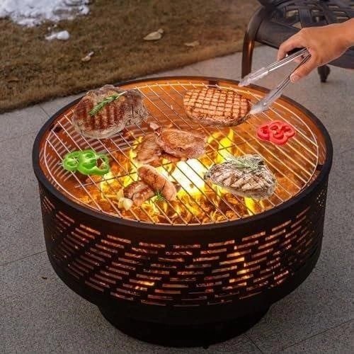 26" Wood Burning Fire Pits with Grill & Lid, Fire Pit