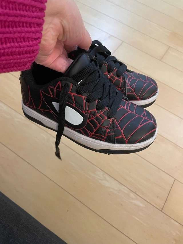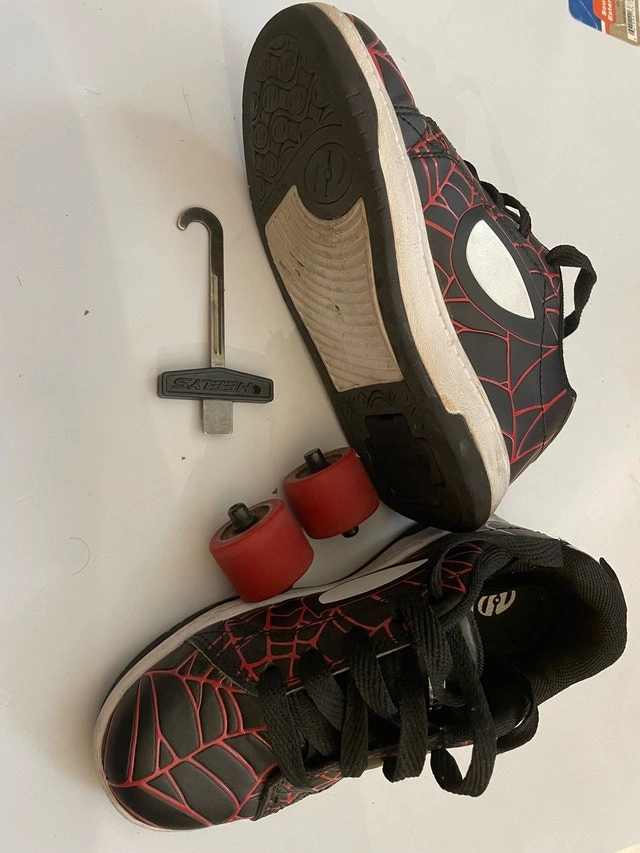 These HEELYS MARVEL MILES MORALES SPLIT SPIDERMAN roller shoes are a child size US YTH 13c, 18 CM. They are in good used condition.