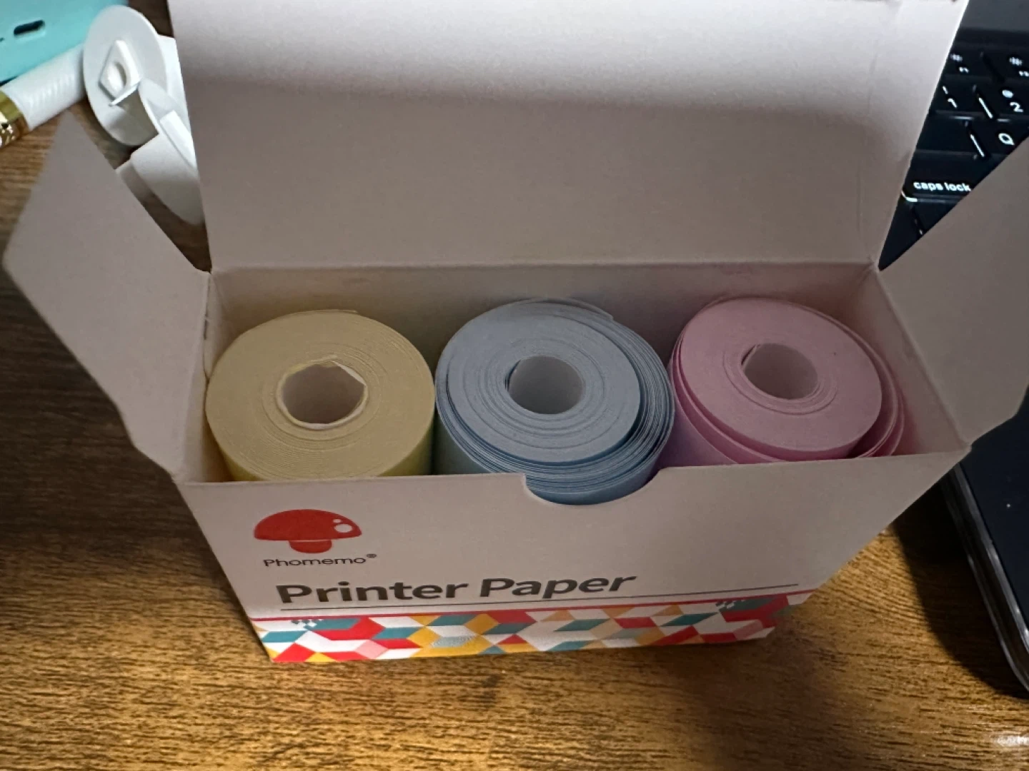 This is a 3-pack of Phomemo thermal printer paper rolls (non sticky ones). The model is Q12-RMYPB. It comes in yellow, light blue, and pink. Each roll is 53mm x 6.5m. Suitable for business, craft… Only used once to print with pink one for a little image. Suitable for T02 printer!