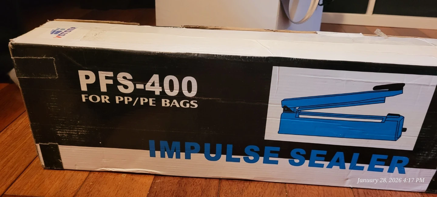 This is a VOTOP PFS-400 impulse sealer designed for PP/PE bags. It's suitable for sealing plastic bags to keep contents fresh or secure. The unit comes in its original box, ready for use!
