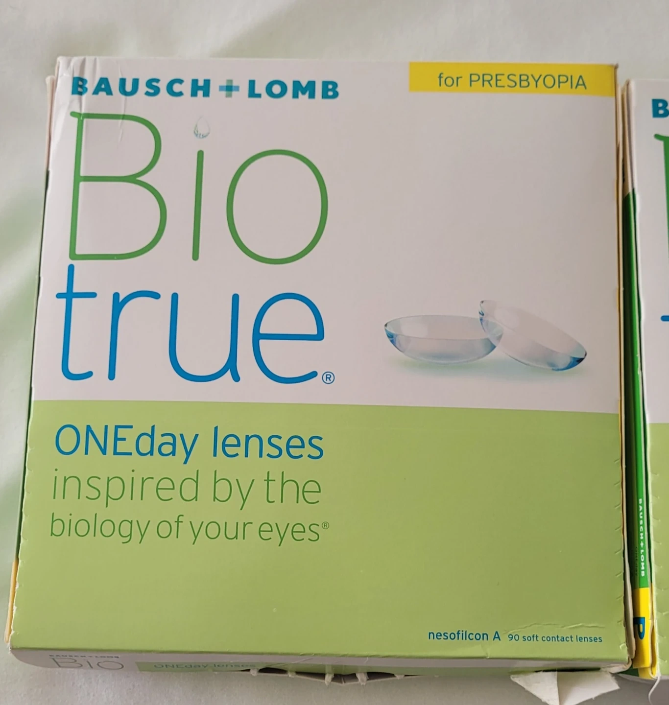These are Bausch + Lomb Bio True ONEday soft contact lenses. Multifocal /Presbyopia Great for dry eye.
