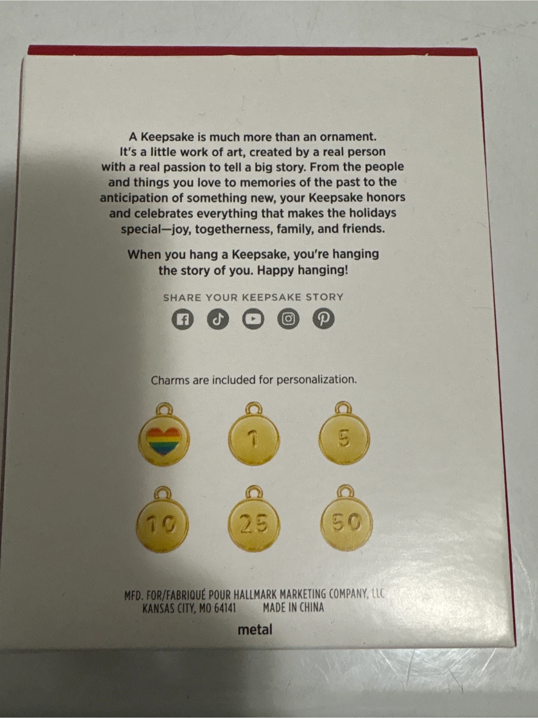 This is a Hallmark Keepsake Christmas tree ornament from 2025. It's titled "Our Love Is Timeless" and features a heart design with an hourglass. Metal construction. Includes charms for personalization.