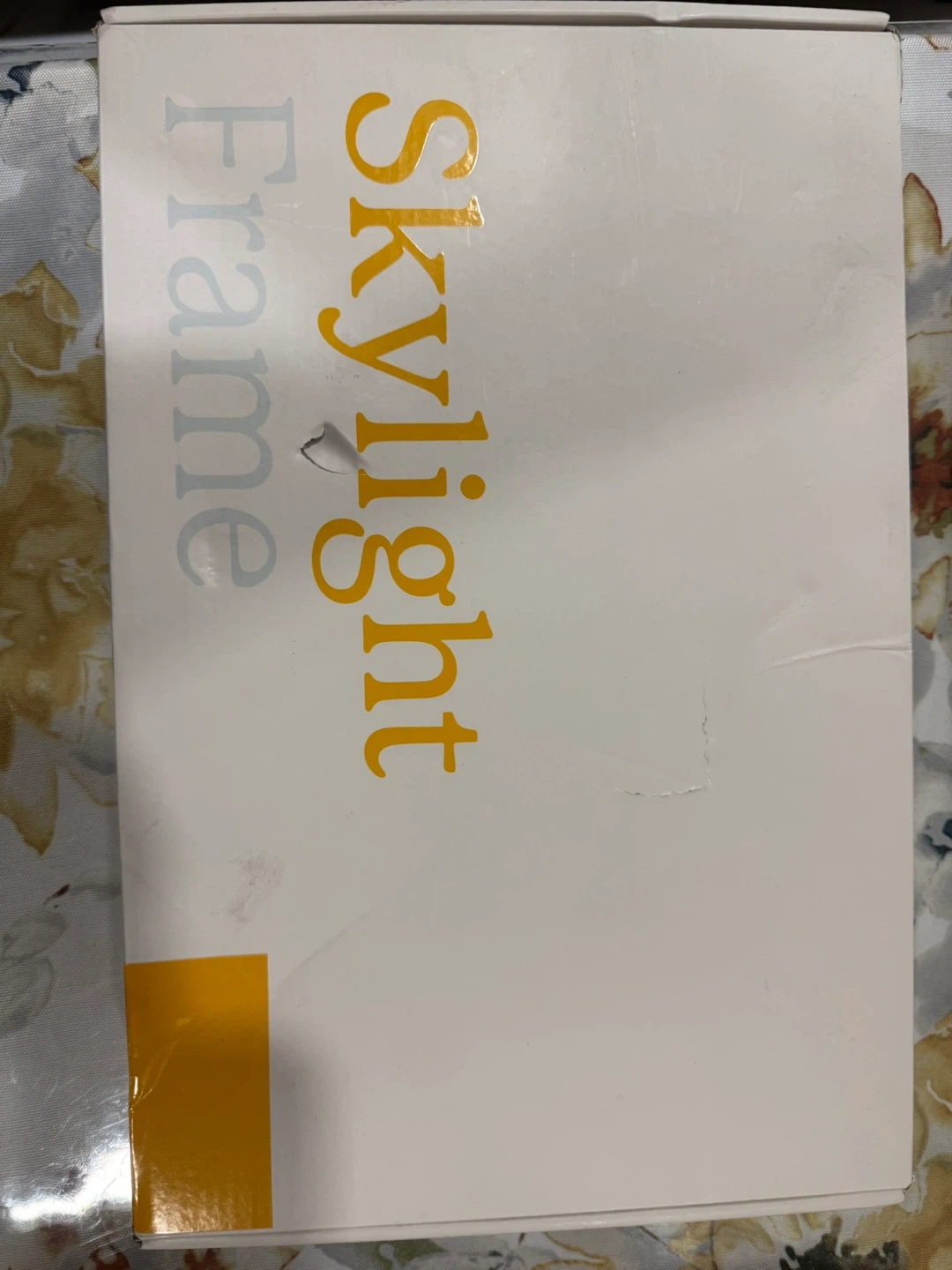 This is a Skylight Frame digital photo frame. It has a large screen to display your treasured memories. The Skylight Mobile App lets you upload and view photos, and invite others to send photos. It's great for easily sharing photos with loved ones!