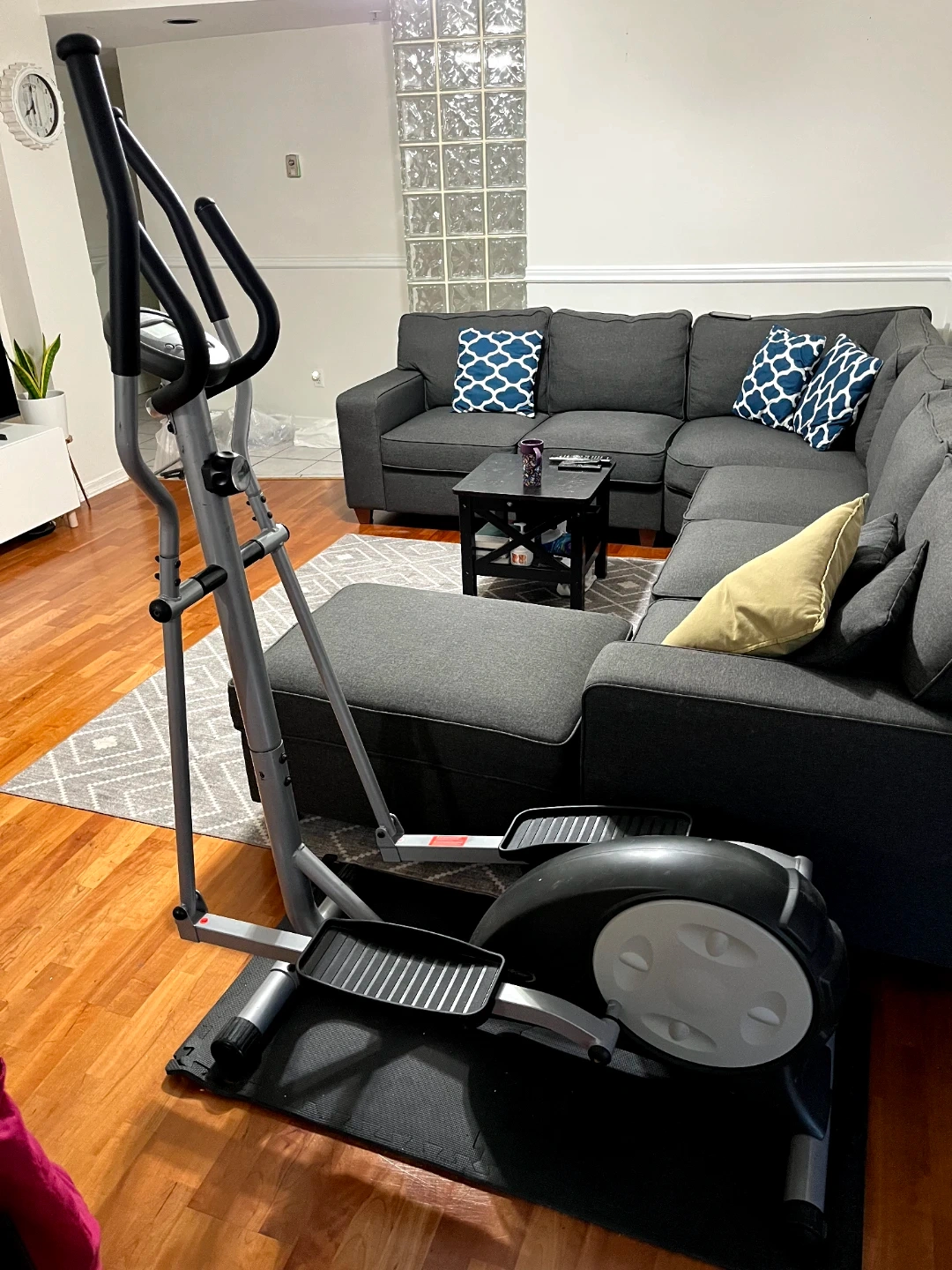This elliptical machine is in good condition. It has a digital display to track your workout. Compact size makes it suitable for home use.