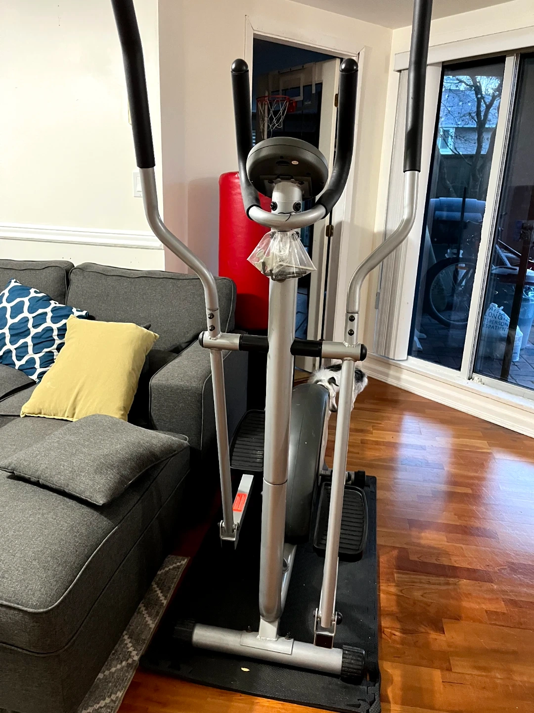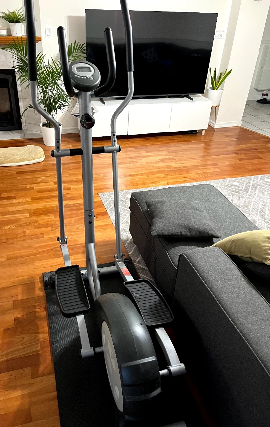This elliptical machine is in good condition. It has a digital display to track your workout. Compact size makes it suitable for home use.