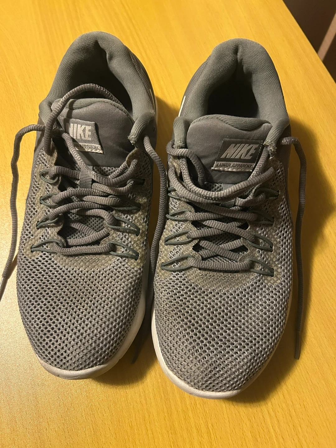 Nike Lunar Apparent running shoes in a grey colourway. These shoes feature a breathable mesh upper and a comfortable sole. Great for everyday wear or light training!