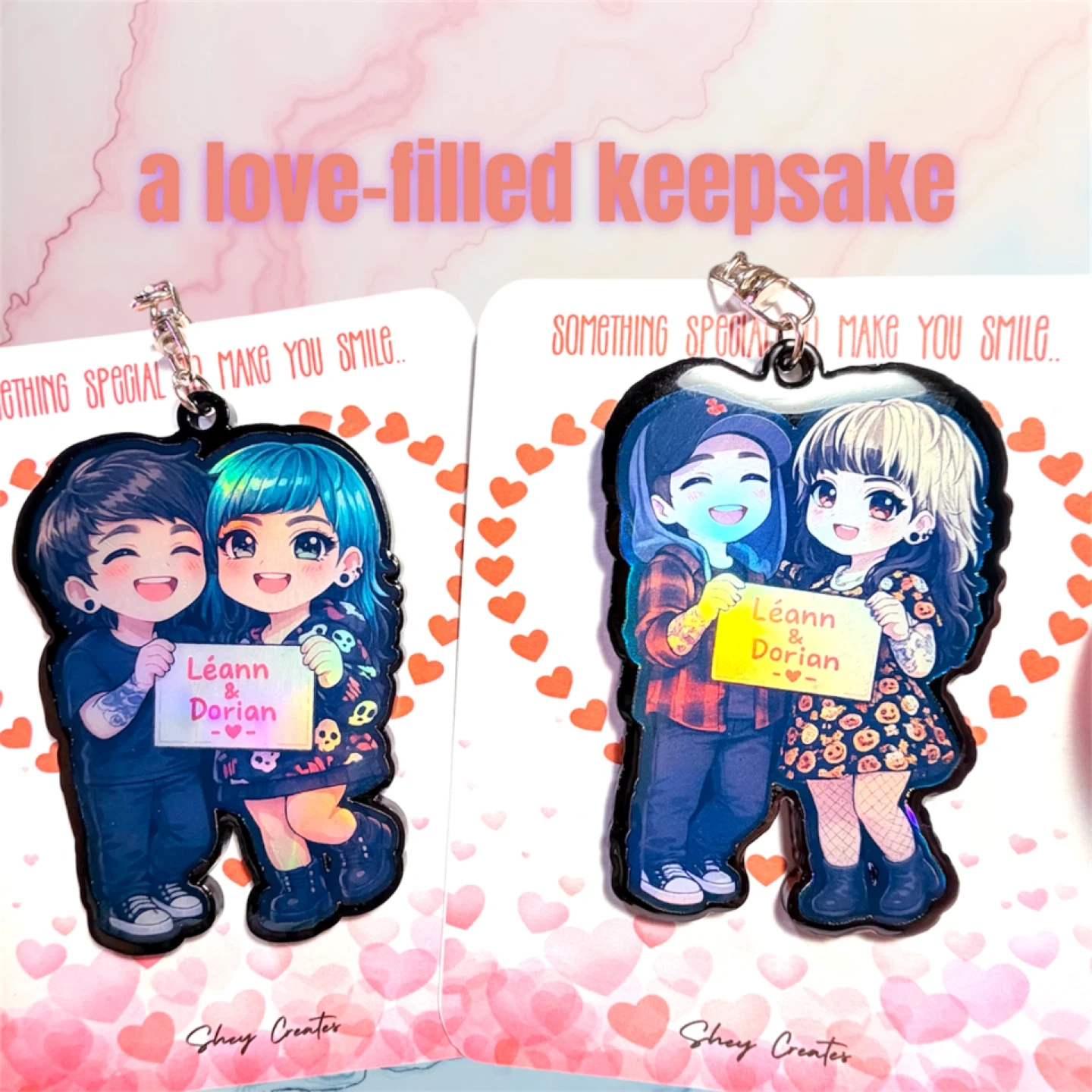 Personalized Chibi style keychain featuring a couple .Choose your names and customize the artwork. It's a great way to commemorate a special relationship!