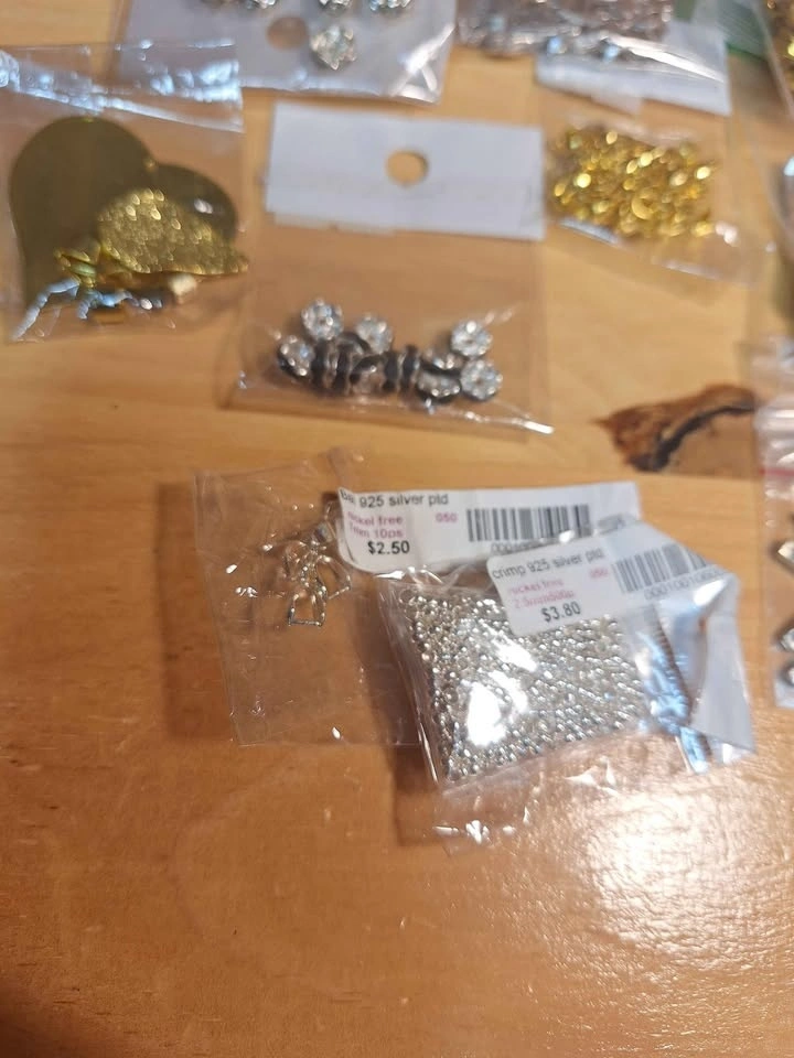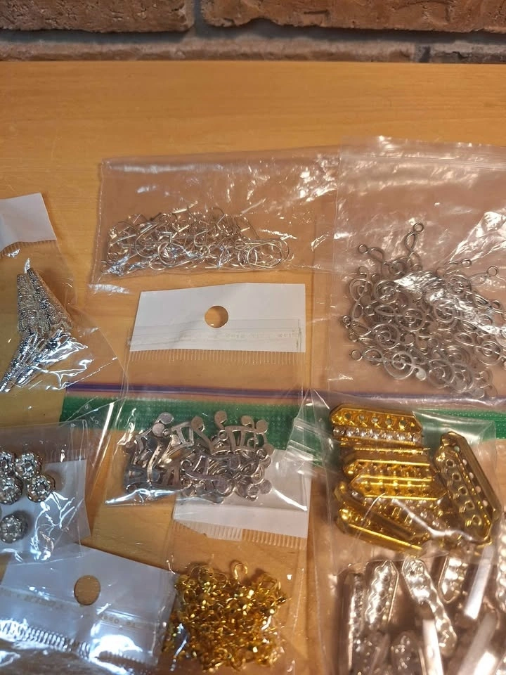 Mixed lot of earrings attachments/posts, charms, crimp beads, bales, bracelet/necklace string dividers, spacer beads and more - some findings are silver plated. Looking to sell these as a lot. I'd be happy to knock the price down when bundling with my other listings!