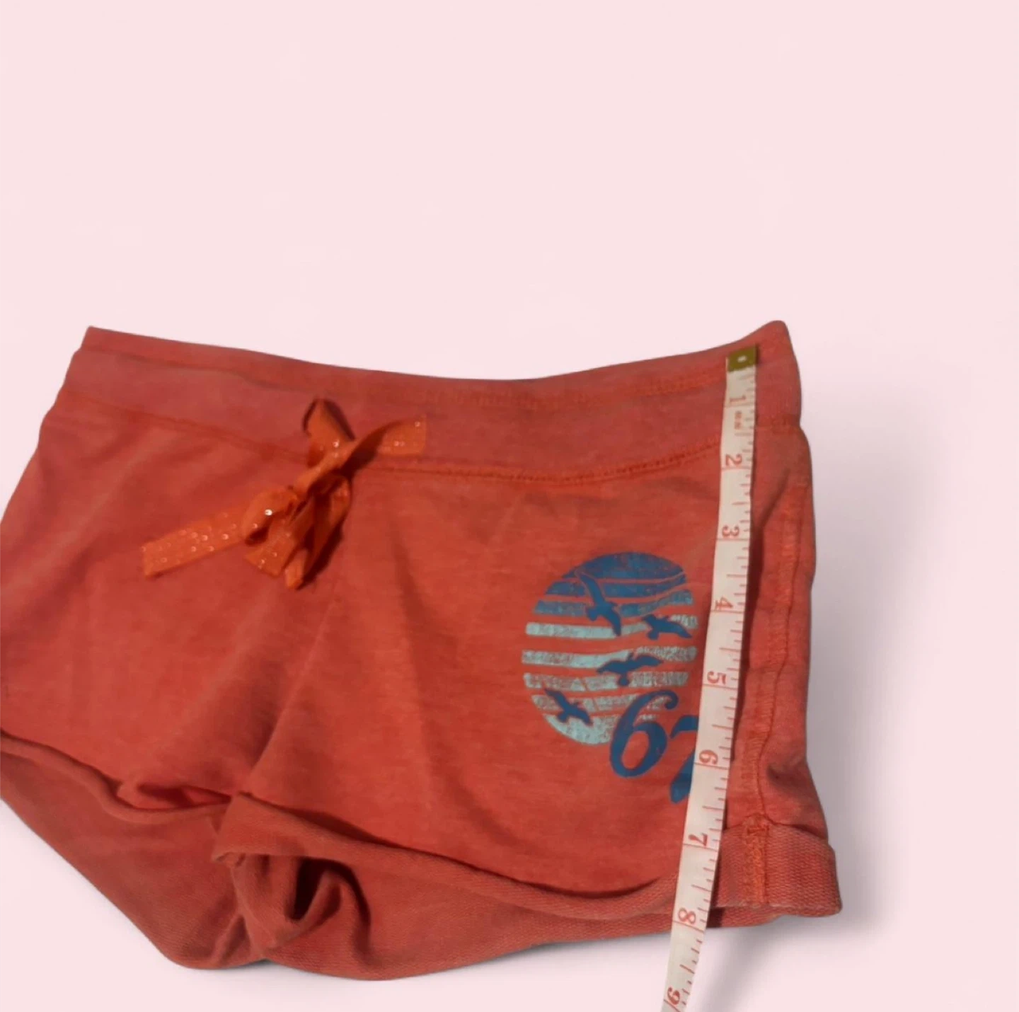 These orange athletic shorts feature a fun graphic design. They're made of a soft, breathable fabric perfect for lounging or light activity. Elastic waistband with drawstring closure.