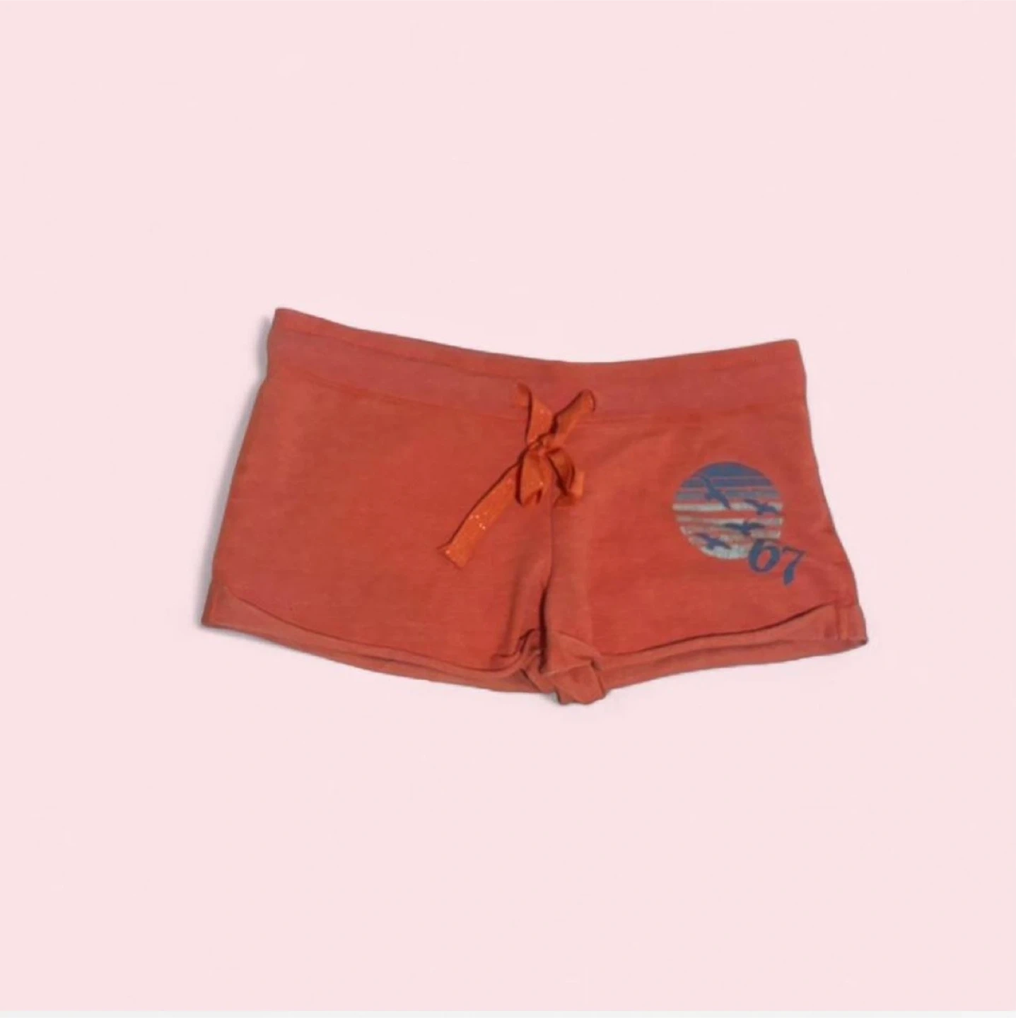 These orange athletic shorts feature a fun graphic design. They're made of a soft, breathable fabric perfect for lounging or light activity. Elastic waistband with drawstring closure.